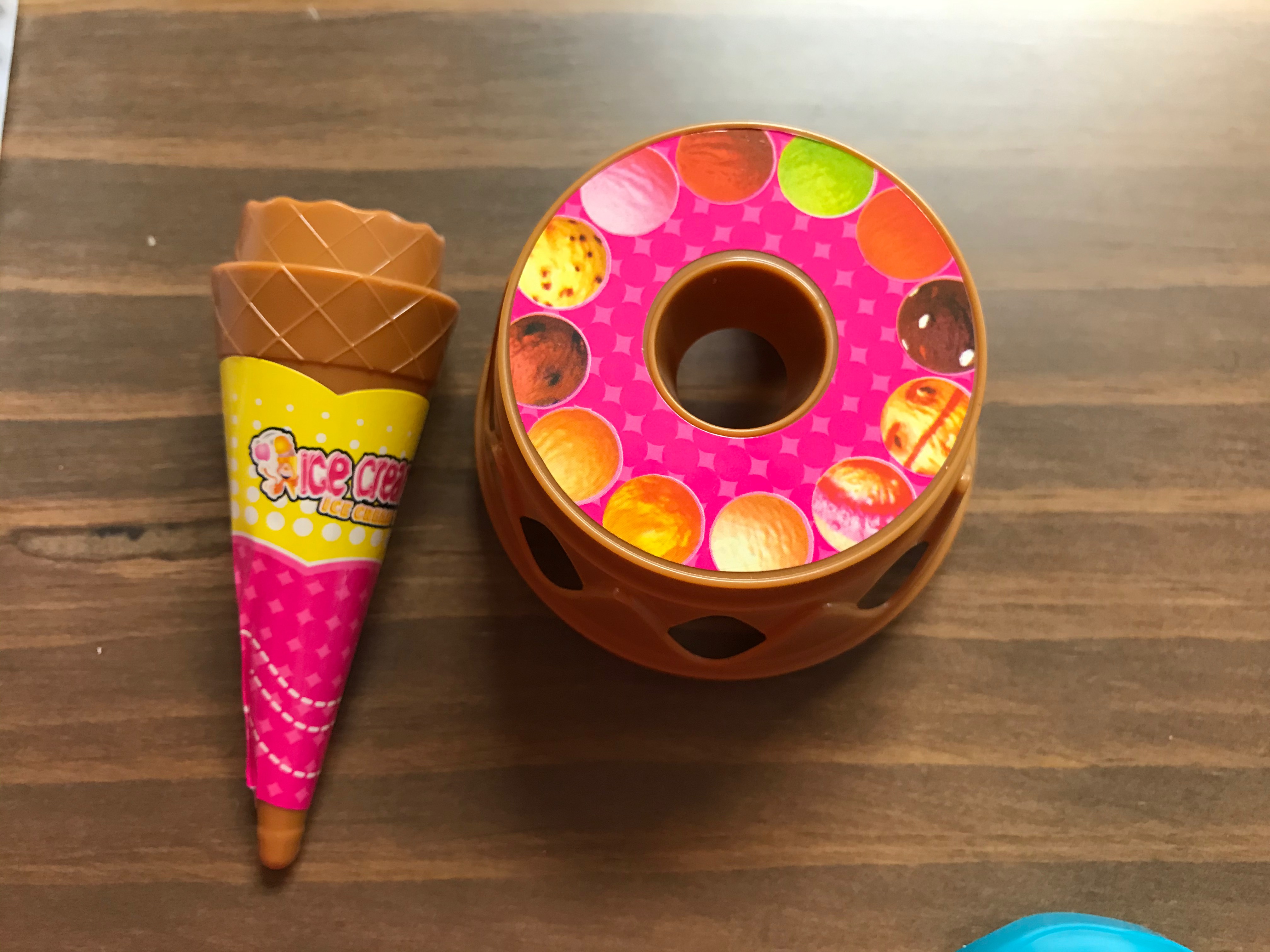 본격적으로 가지고 놀기에 앞서 스티커를 이용해 아이스크림 콘과 지지대를 예쁘게 꾸며 봤어요~ 지지대는 원형의 동그란 모양이라 비교적 쉽게 붙혔는데 콘이~ 쓰읍 콘이 붙이기가 어렵네요~ 호기롭게 그냥 대충 붙이면 되겠지 했다가 좀 많이 비뚤어지게 붙이는 바람에 숭이가 실망을...뭐 아무렴 어떻습니까 노는데 지장은 없으니ㅎ