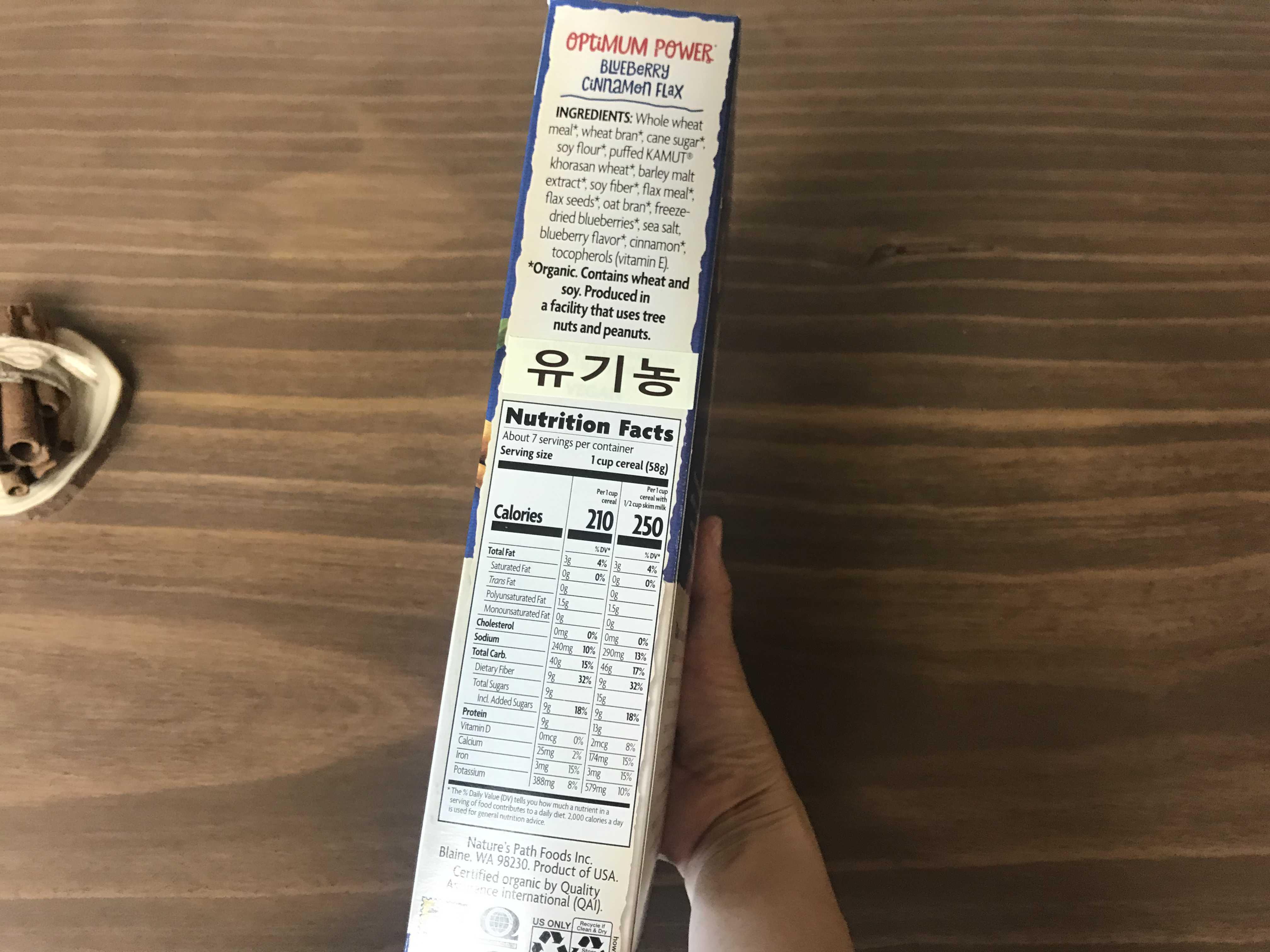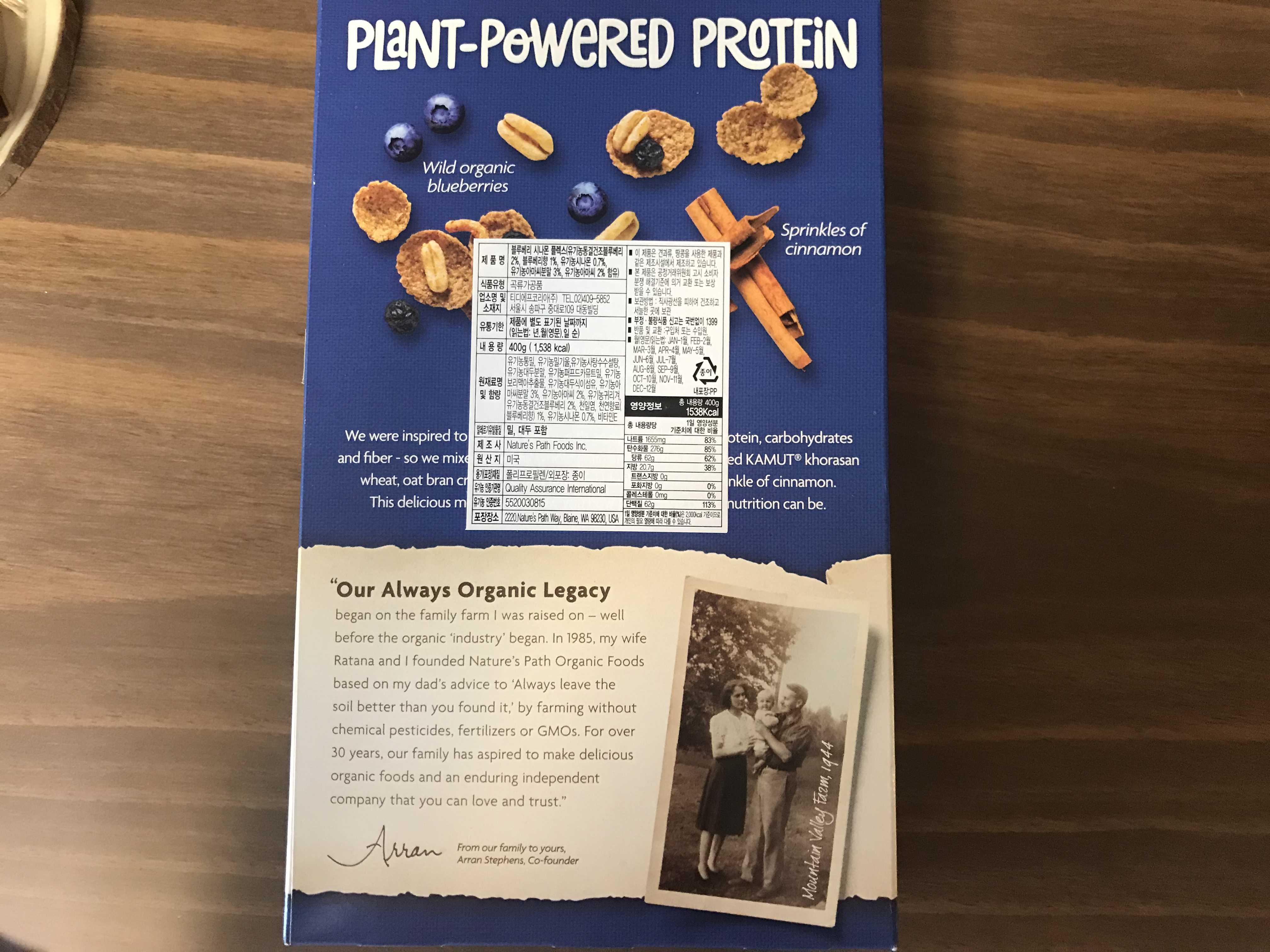 오늘 소개해드릴 씨리얼이예요~ 네이쳐스패스 제품이구요. 이름은 옵티멈 파워 블루베리 시나몬 플렉스 이름이 상당히 기네요^^;;;