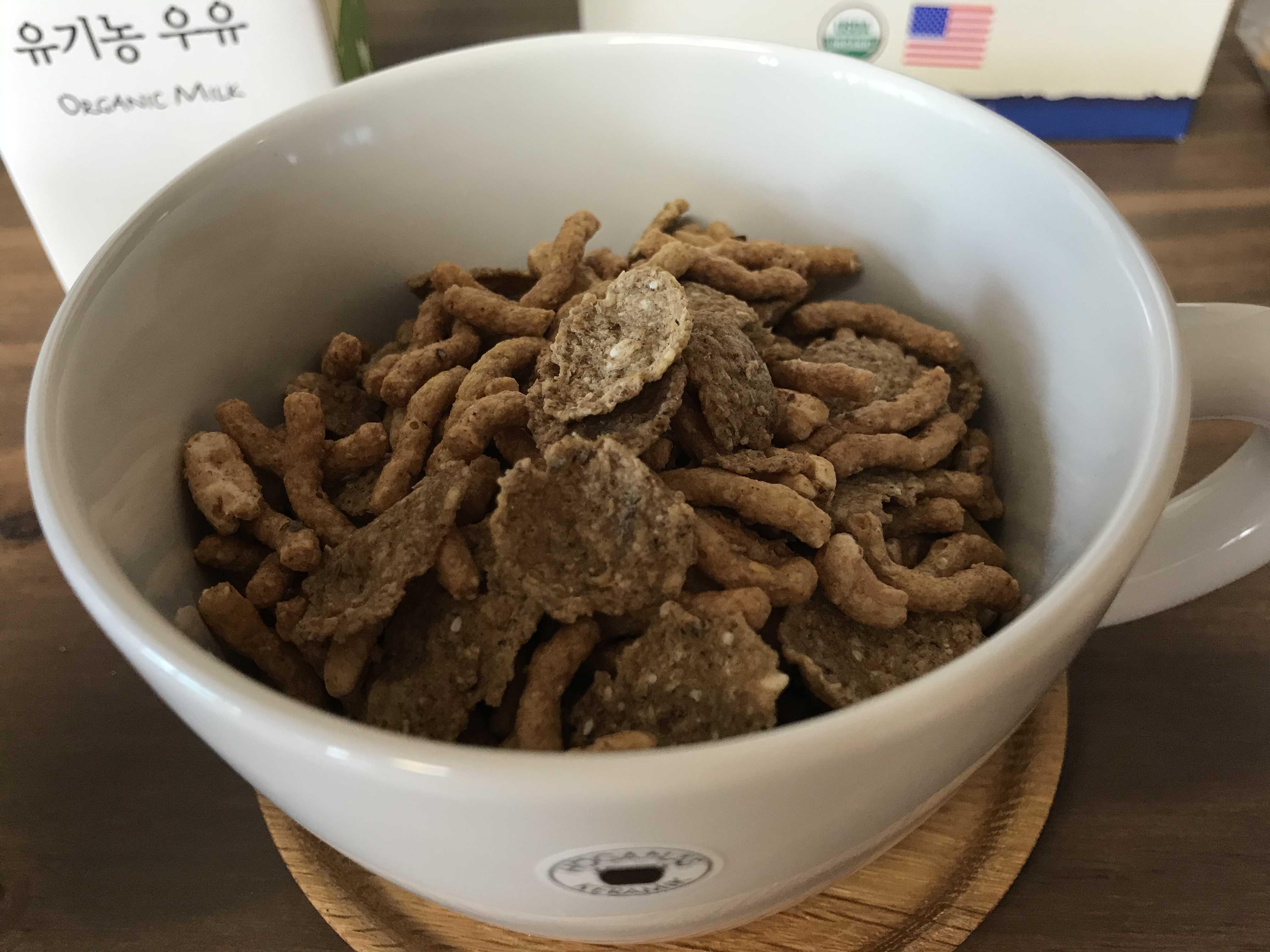 숭이가 처음 접하는 씨리얼이기에 엄마 마음을 담아 골라본 유기농씨리얼, 달지 않아 좋고 담백하면서 구수한 맛이