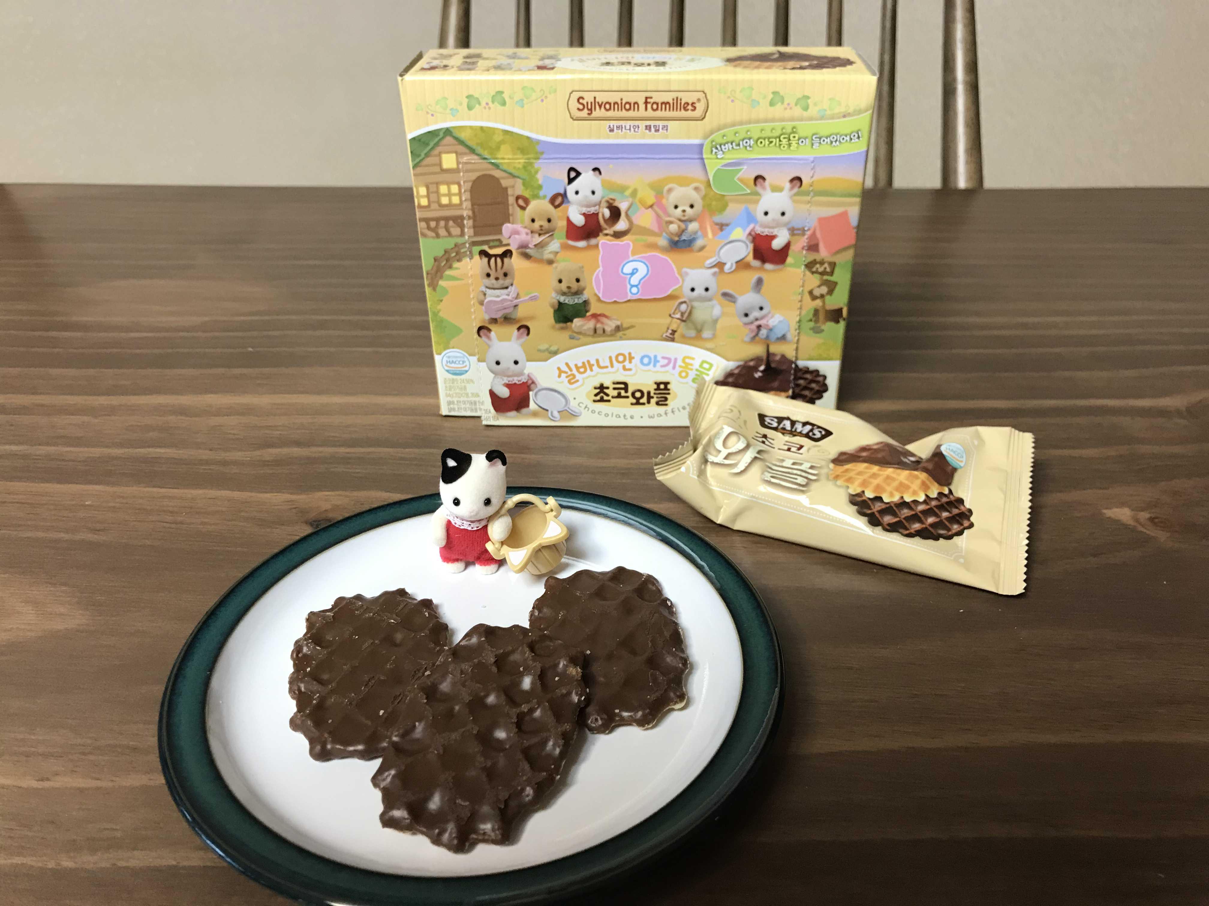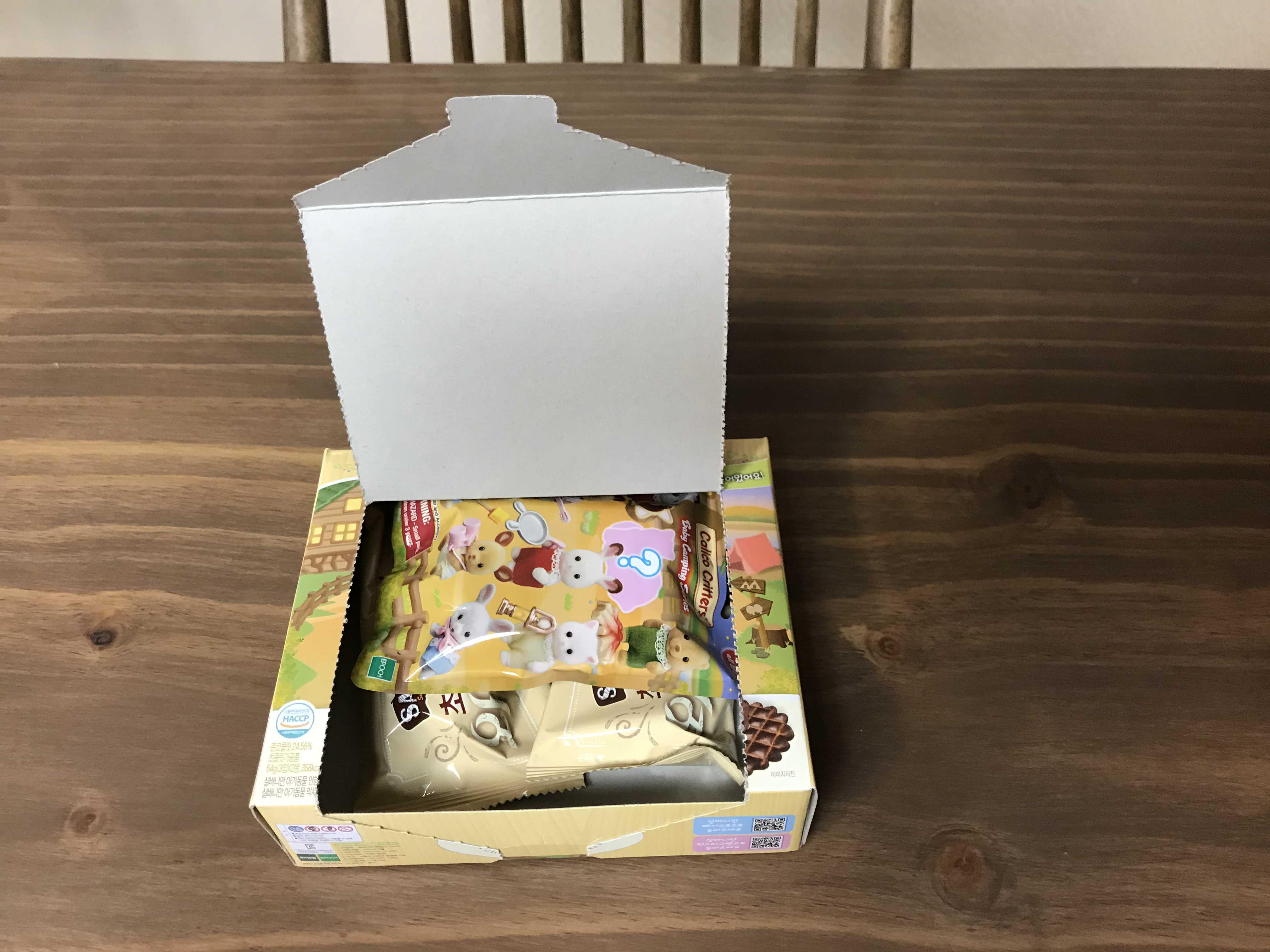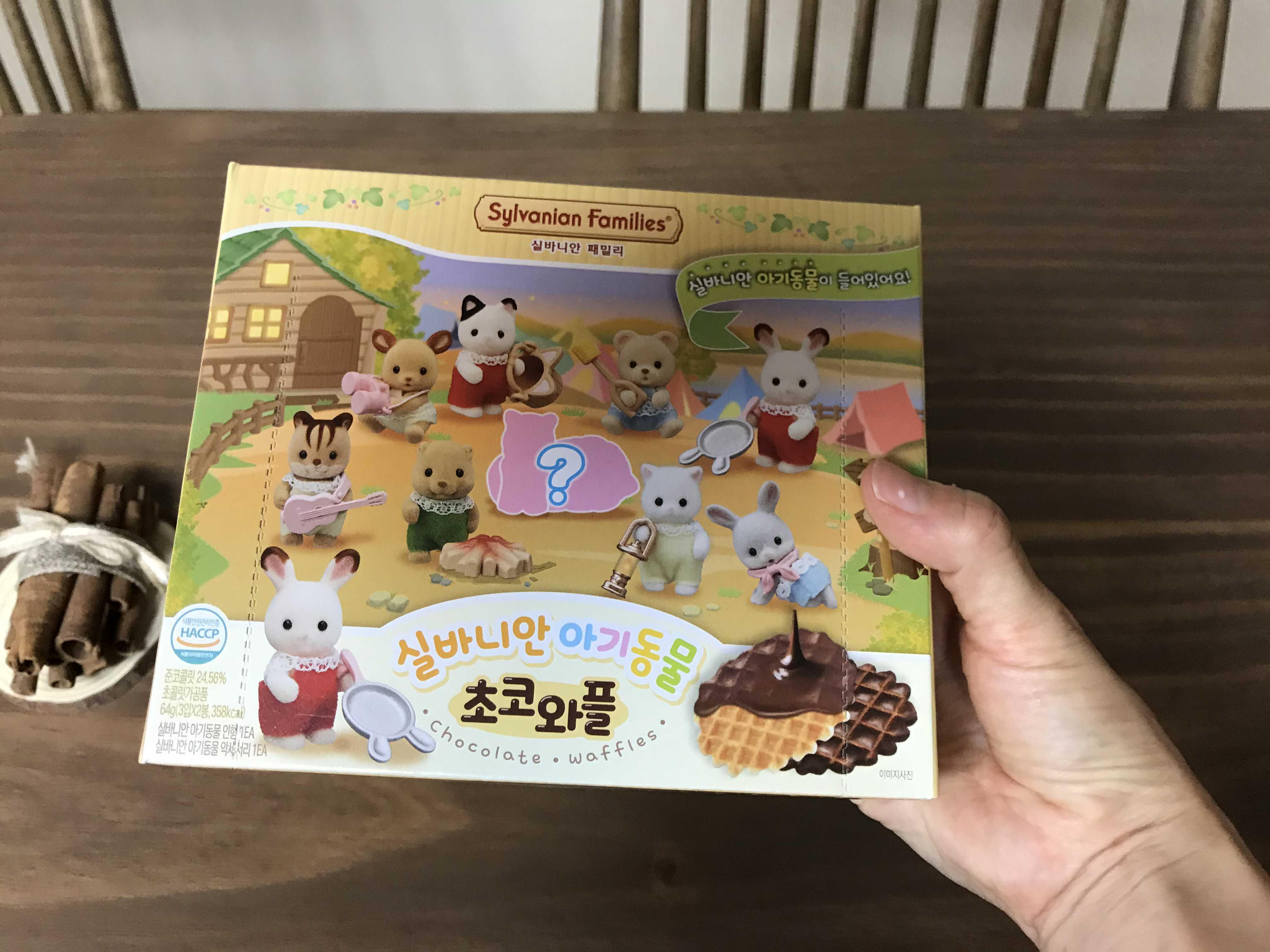 손바닥만한 작은 상자 속 실바니안피규어와 초코와플 과자가 들어있네요
