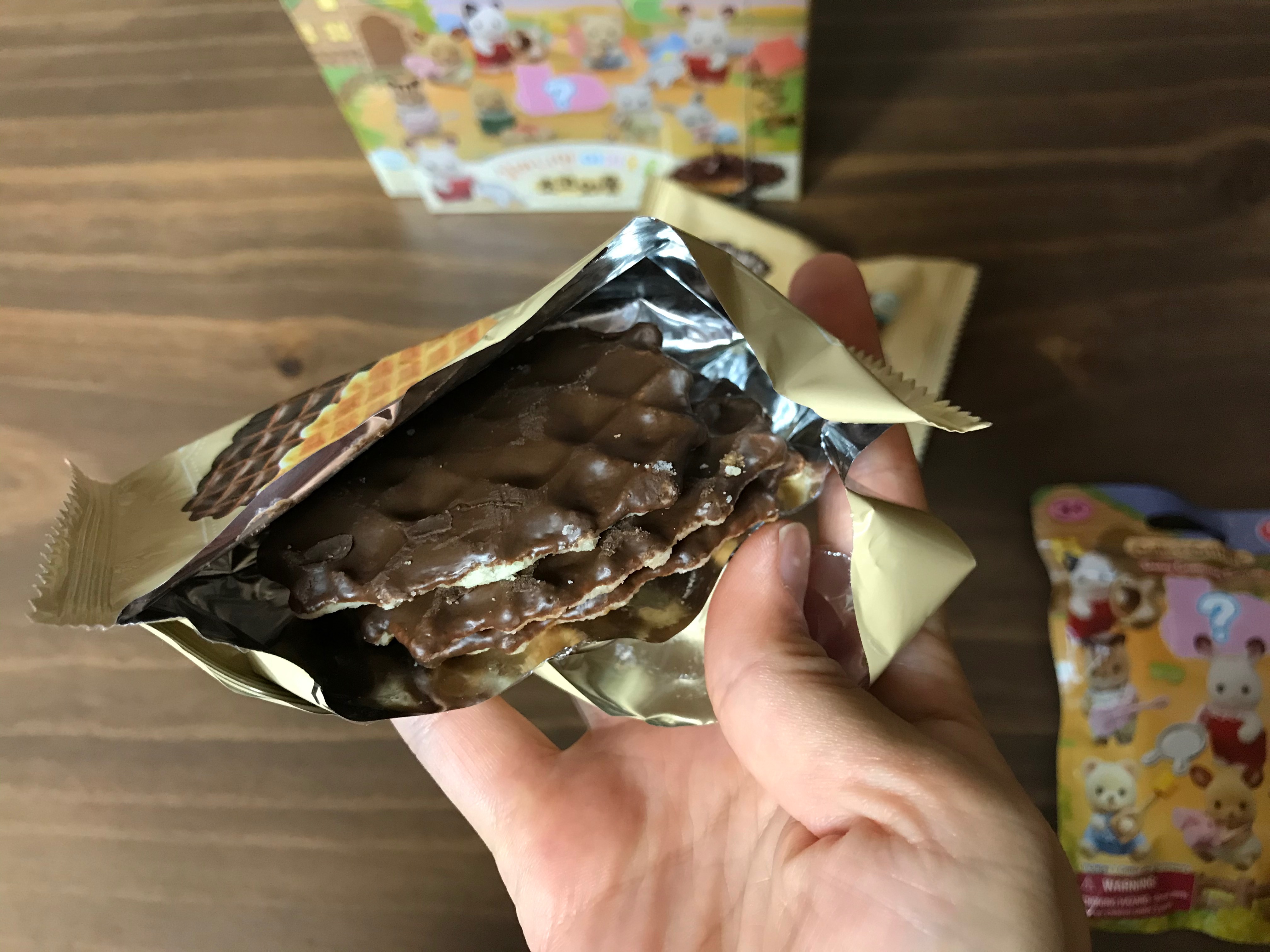 초코는 한쪽면에만 뭍어있고 다른 한면은 그냥 와플이예요