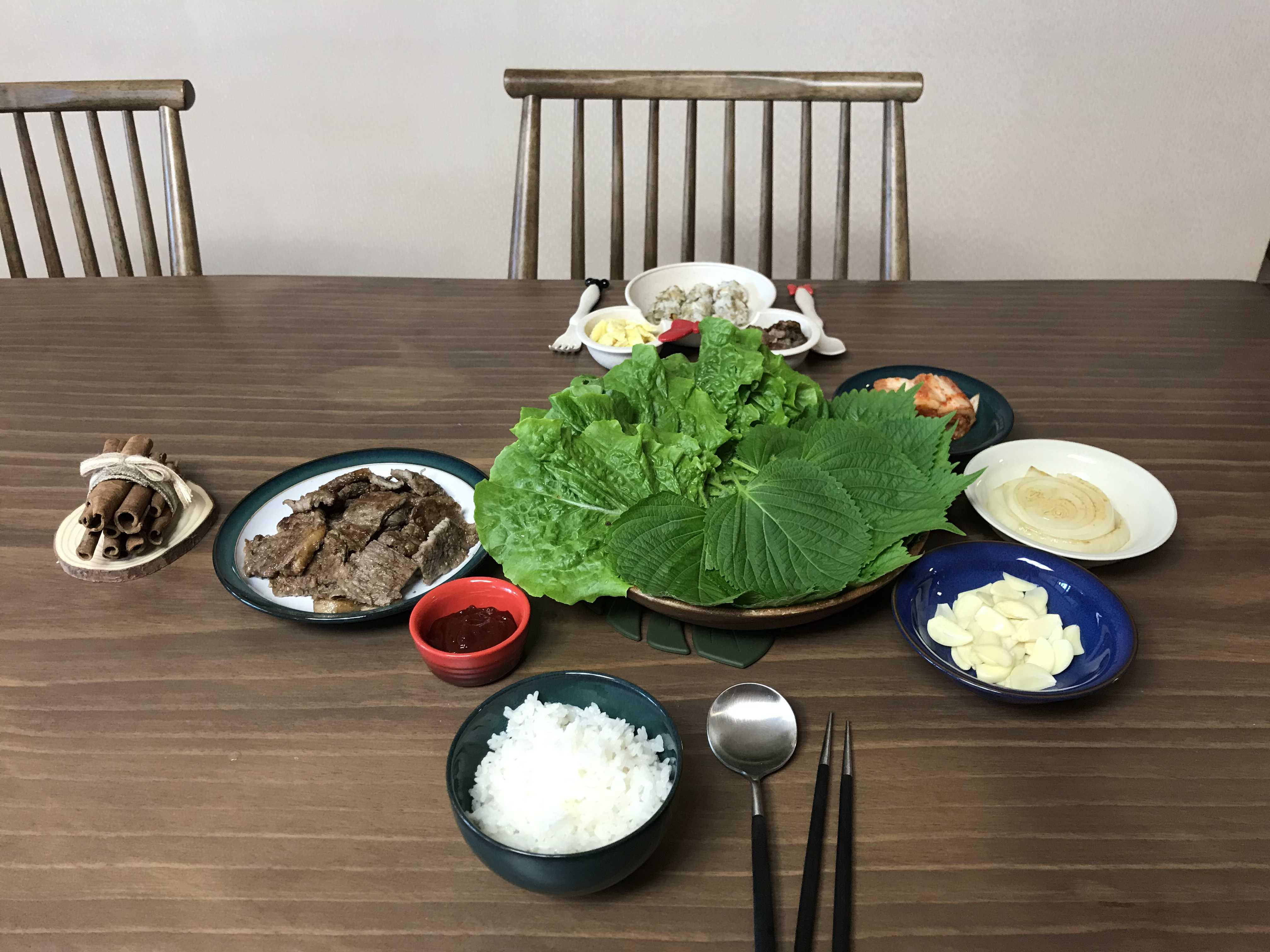 고기가 있으니 반찬이 없어도 상차림이 근사하네요