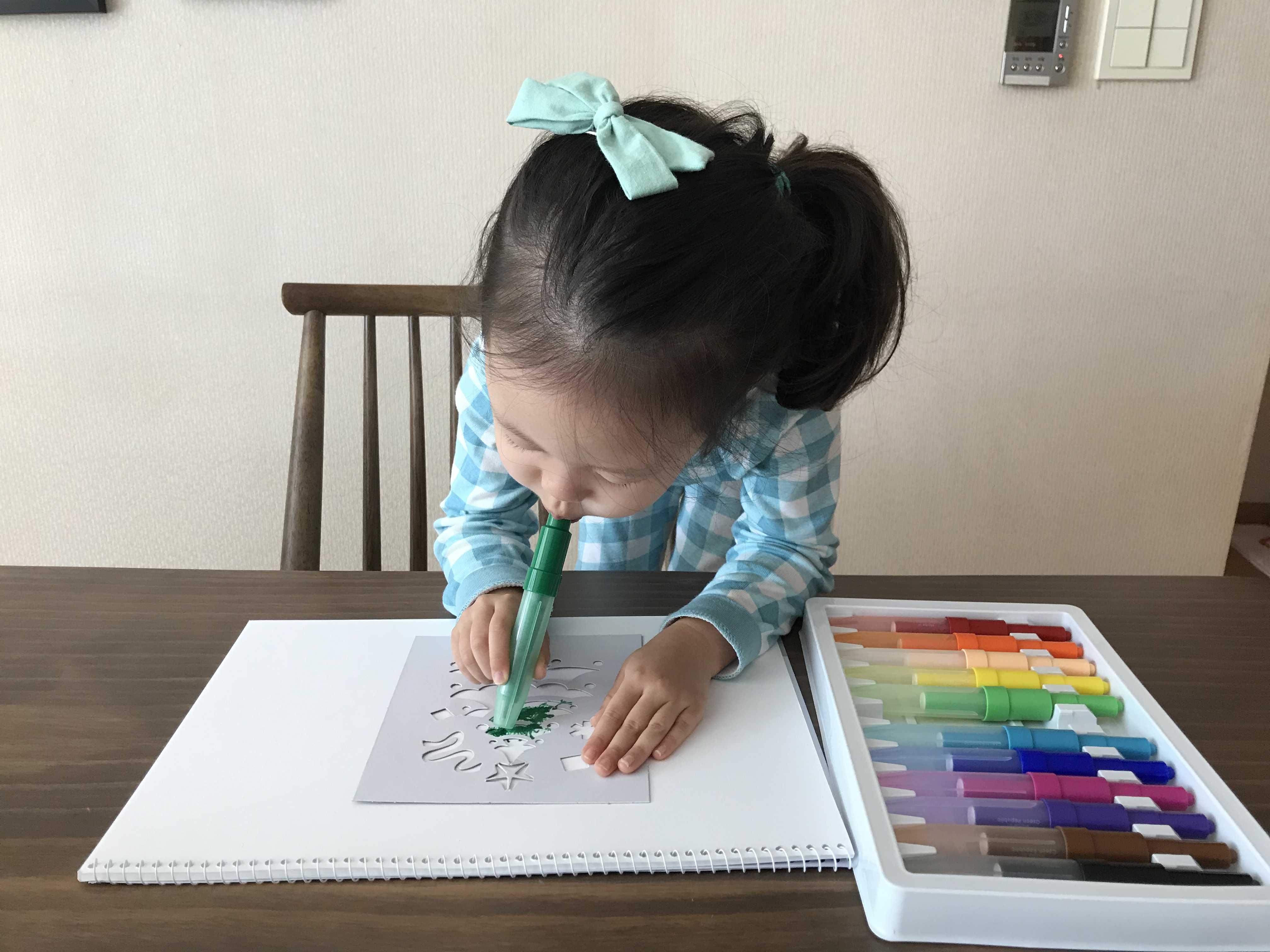 나중에는 이렇게 다양한 색상을 섞어서 예쁘게 채색을 하더라구요^^ 도안이 여러개라 하나씩 혼자서 하다보면 시간가는줄 모르고 놀기에 정말 굿템이예요~ 준비하고 치우기가 번거롭지도 않고 손이나 옷이 더러워질 염려도 적구요~ 여러모로 만족스러운 집콕놀이템이네요