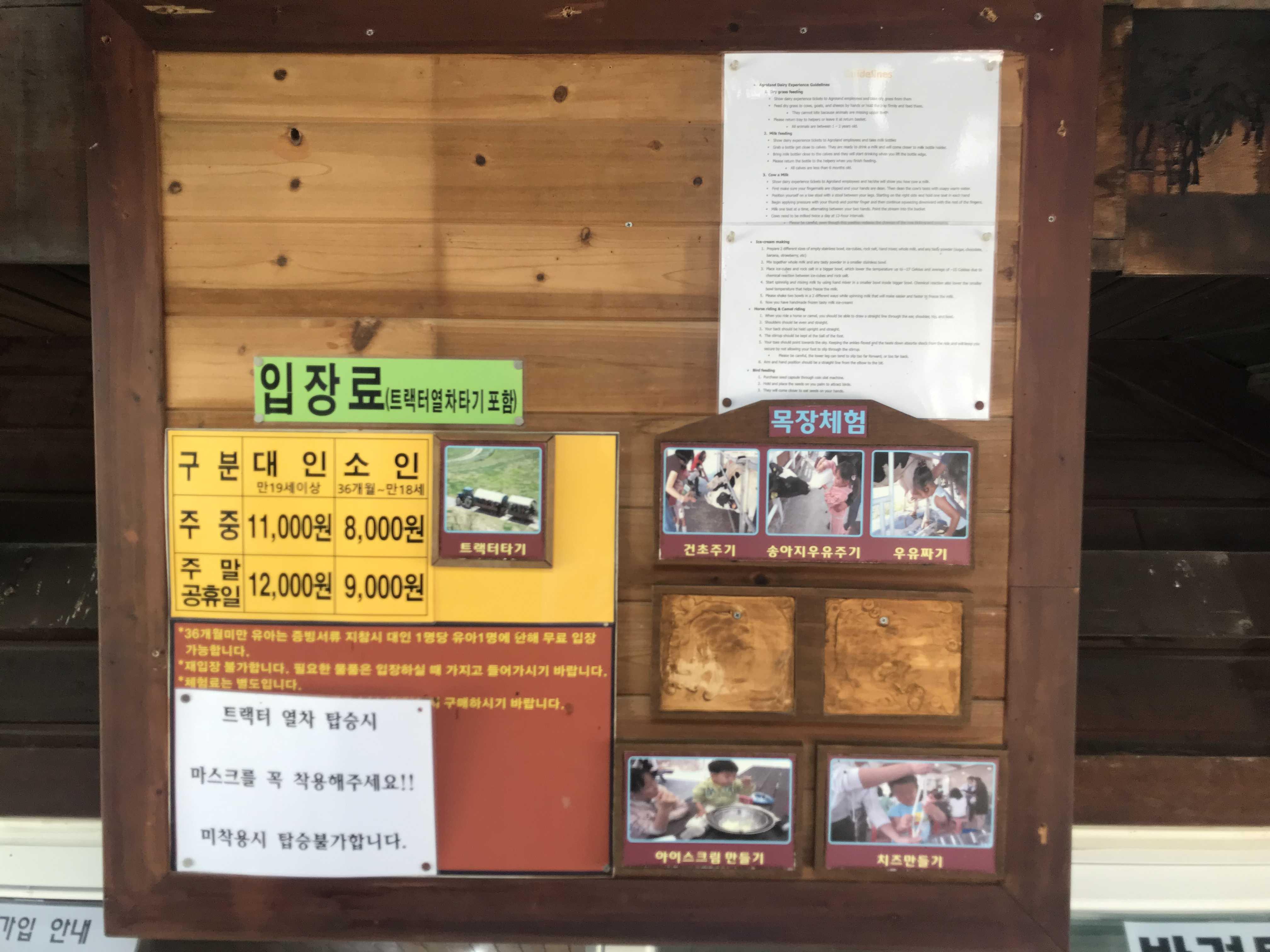 여러가지 목장 체험 코너 근처에 트랙터열차 탑승하는 곳이 마련되어 있어요~ 저희 가족은 트랙터 열차 탑승은 그냥 하지 않고 가져왔답니다~ 트랙터 열차가 지나가는 모습을 봤는데 빽빽하게(안전거리따윈없이) 사람들이 꽉꽉 차서 운행되고 있더라구요~