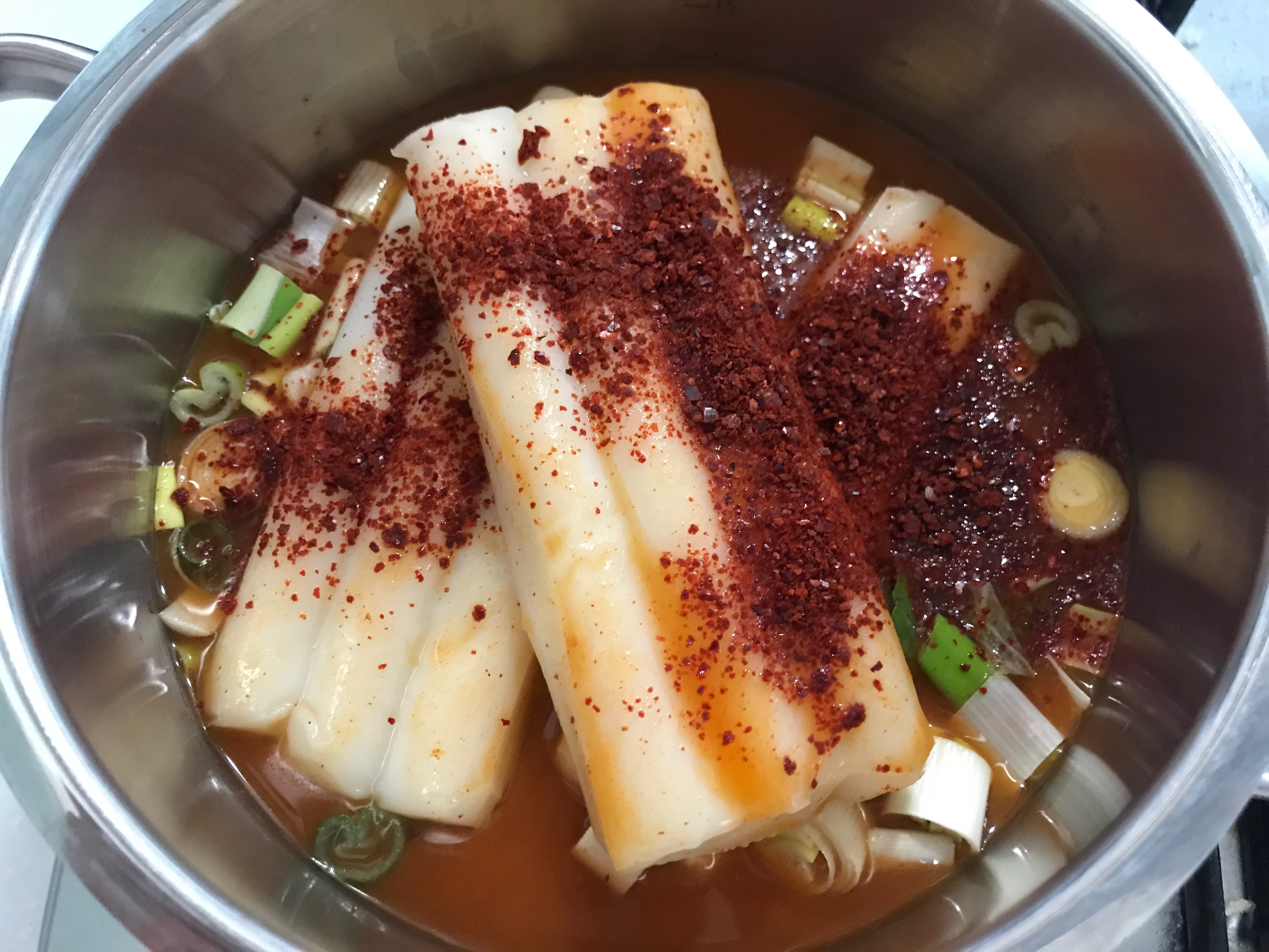 가래떡이 8줄로 취향에 따라 썰어먹어도 좋겠지만 전 긴 가래떡 고대로 먹고 싶어서 원형 그대로 넣어 조리해 보았어요^^