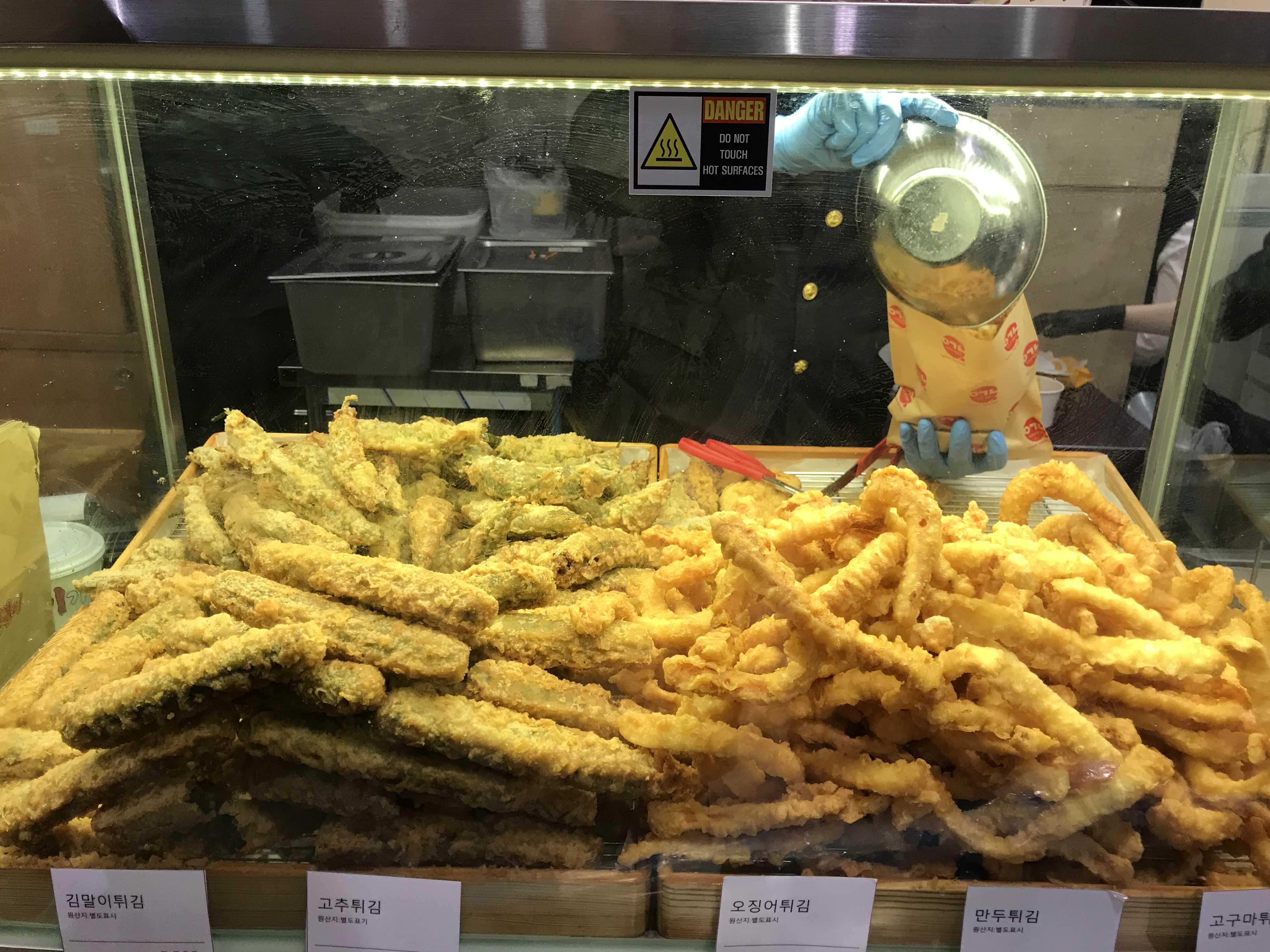 튀김은 오징어(1,500원) 고구마(1,500원)
