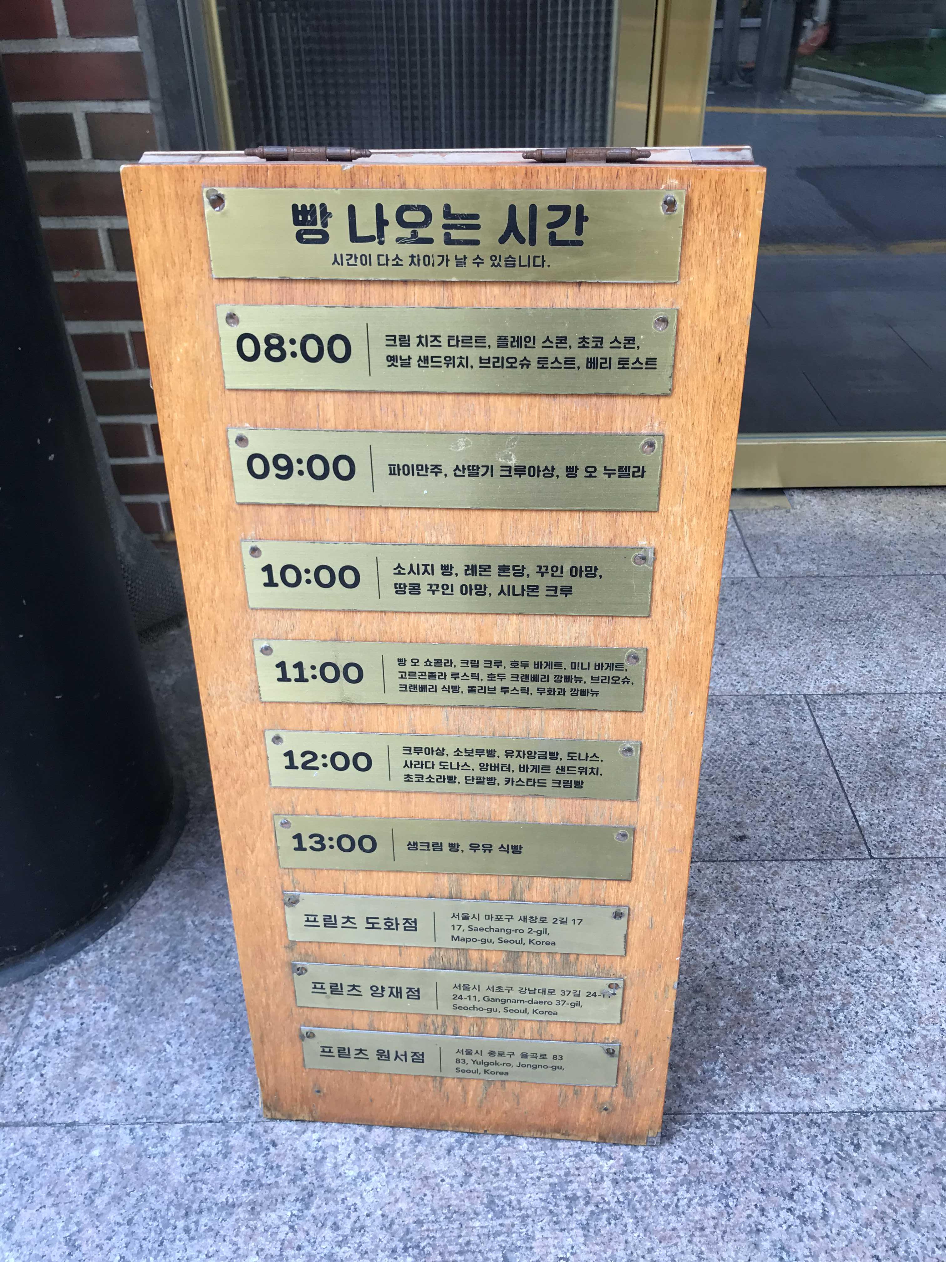 빵나오는 시간표는 입구에 세워져 있어요^^