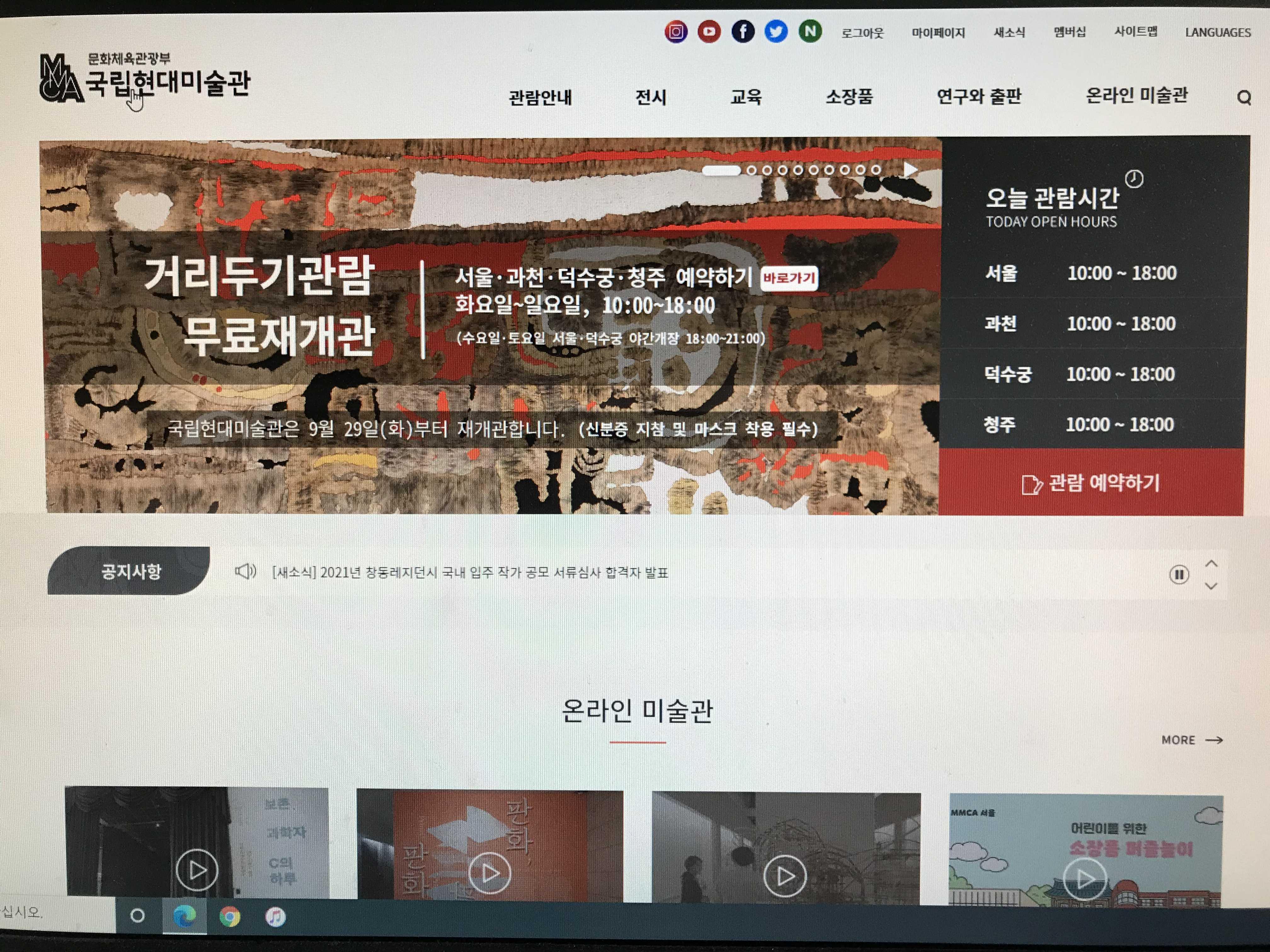 그래서 한동안 문을 닫았던 국립박물관과 국립미술관이 재개관을 했다는 반가운 소식이 들려왔어요~