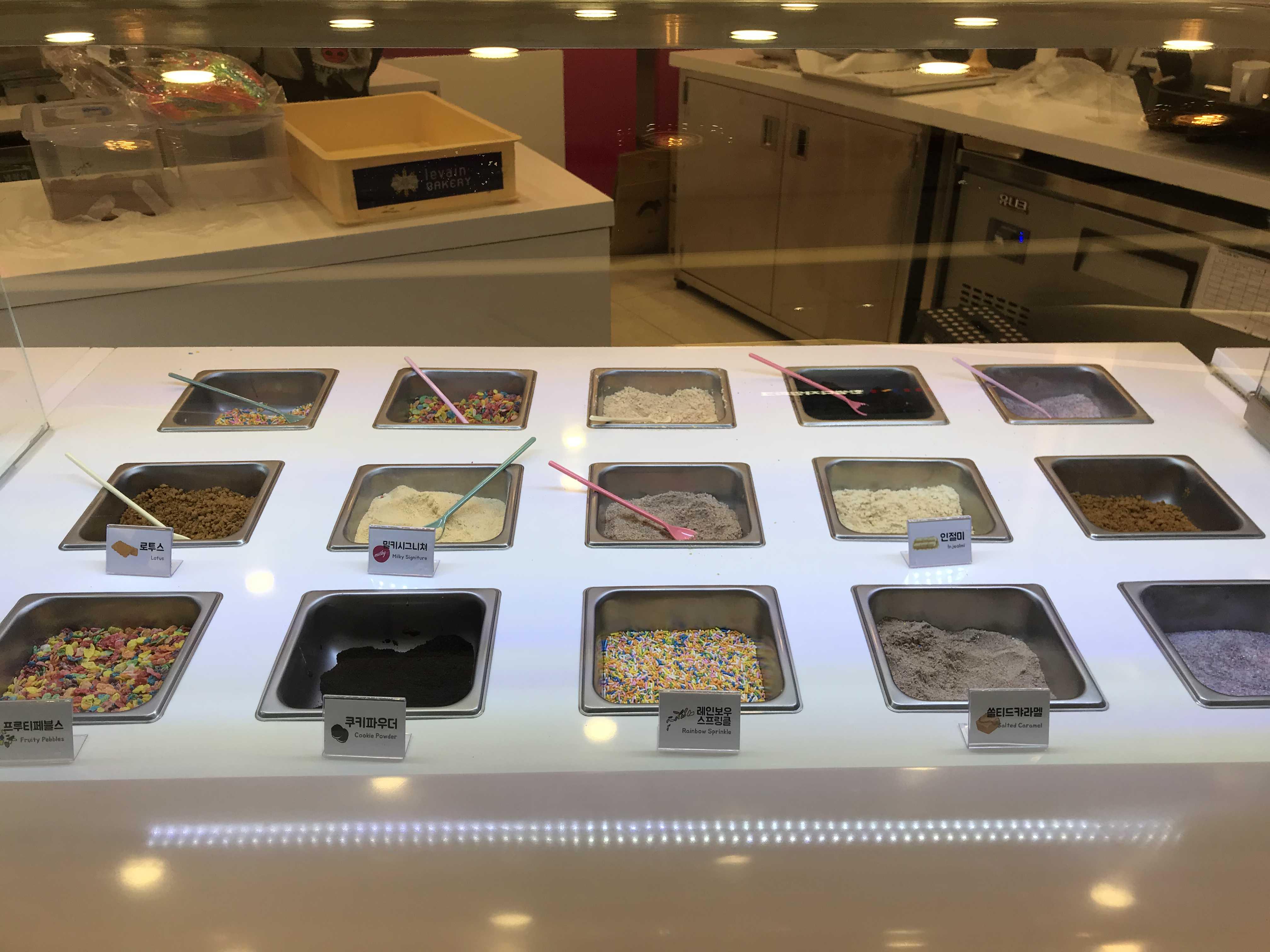 다양한 아이스크림 토핑재료들이 있어요~