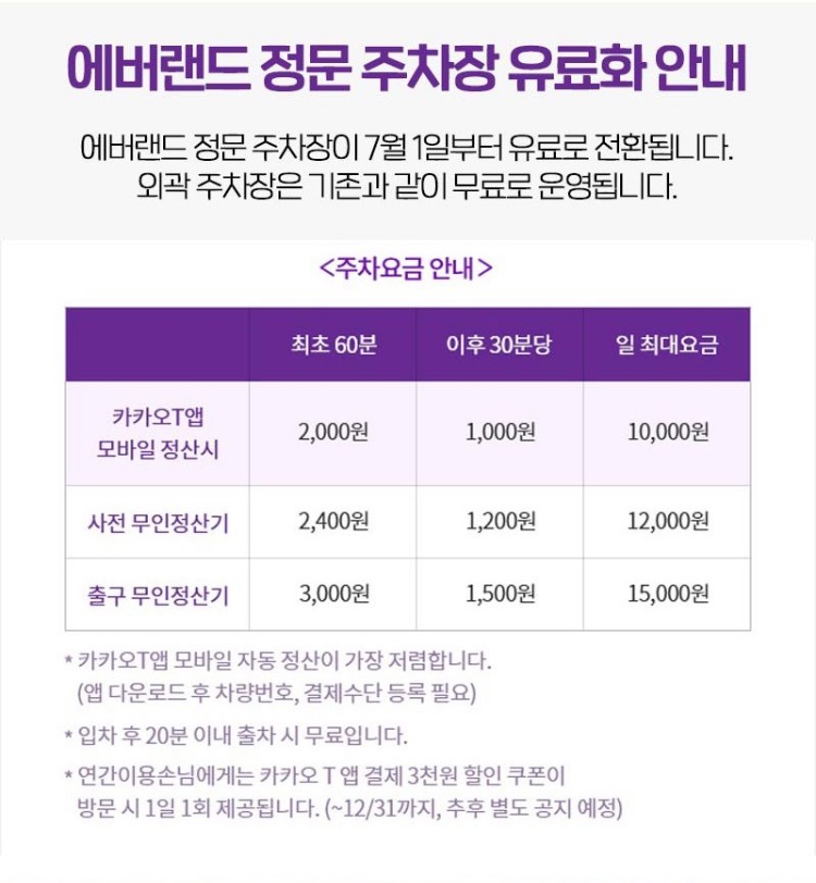 에버랜드 정문 주차장이 7월 1일부터 본격 유료로 전환되었죠~