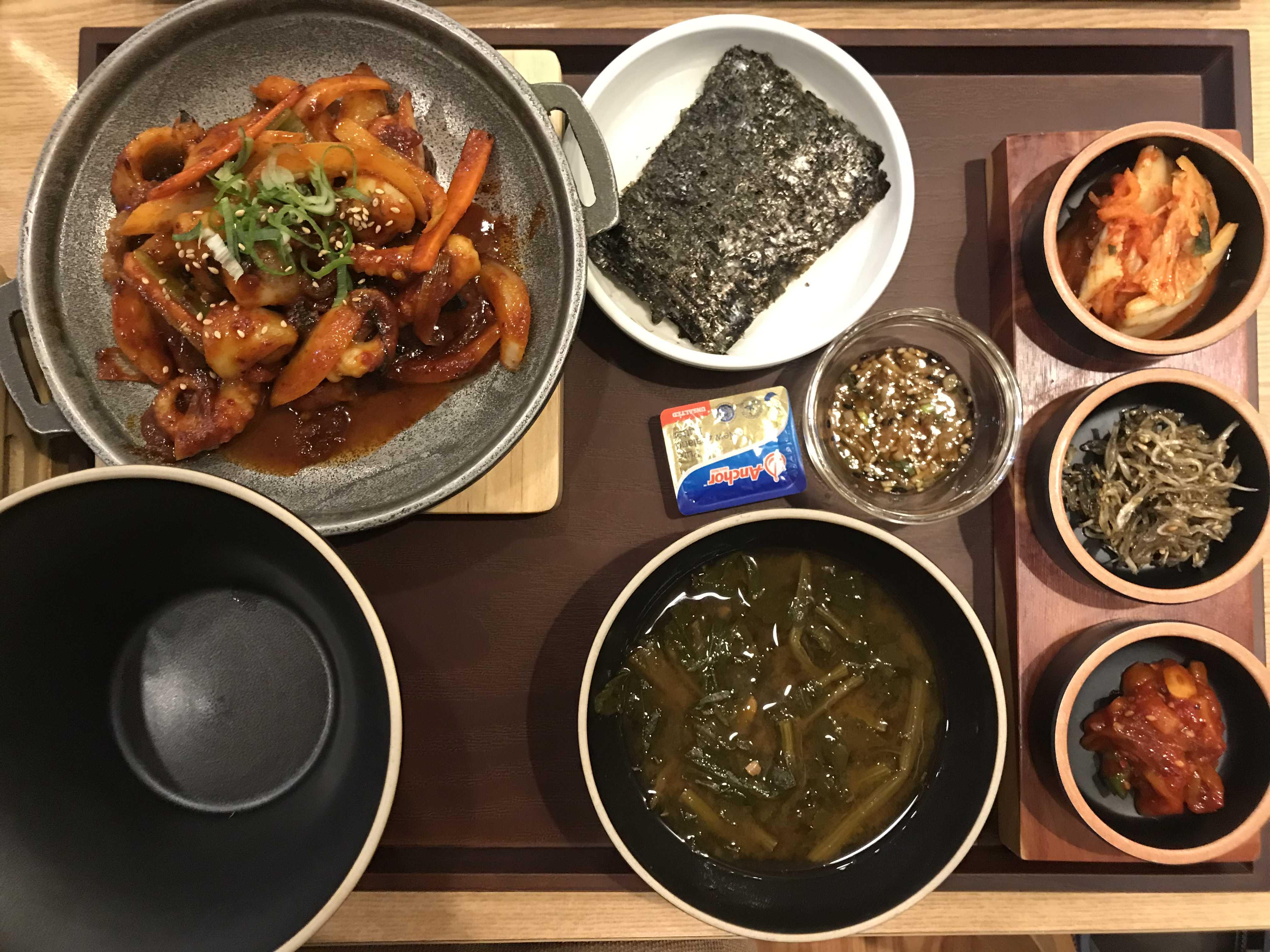 쭈꾸미 볶음과 계절솥밥정식을 주문했어요