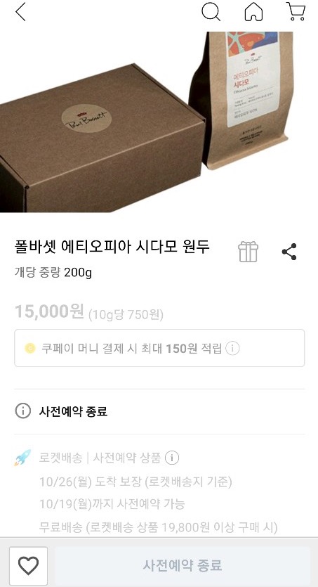 제가 구매한 에디오피아 원두는 200g에 15,000원