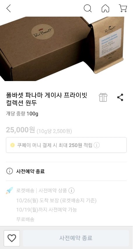 그리고 게이샤 원두는 100g에 25,000원이였어요