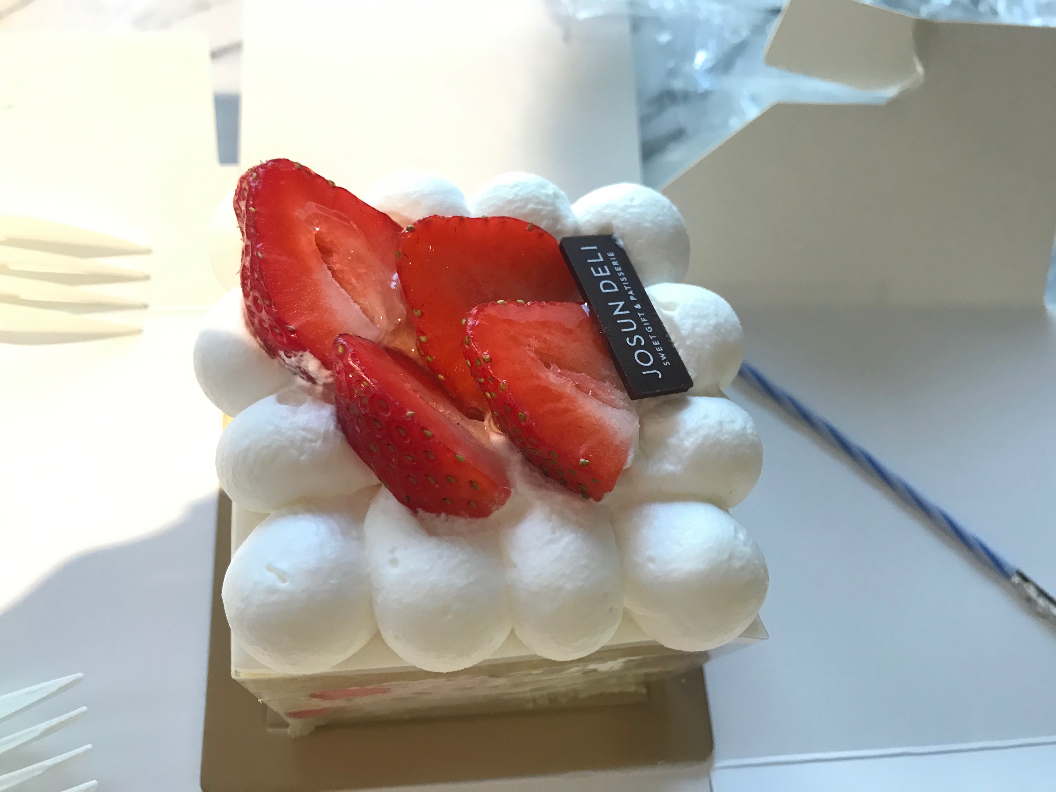 생딸기 케이크는 바로 사올 수 있었기에 포장 주문해서 방으로 가져왔어요~ 조선델리에도 좌석이 있긴 하지만 다 차 있기도 했고 붐비는 로비 근처라 유동인구도 많아서 안전하게 방에서 초키고 기념일 기분도 내기로 했네요^^