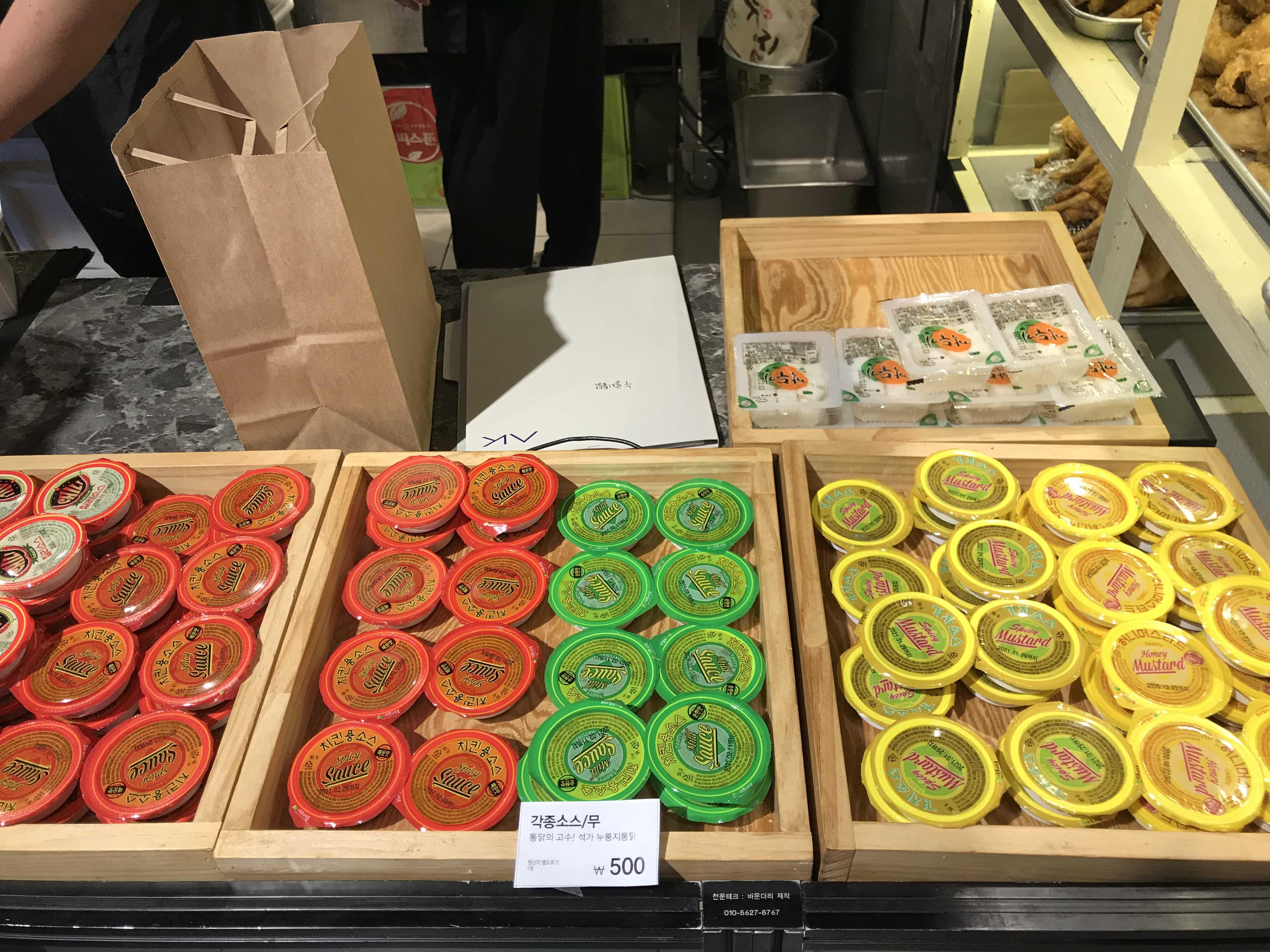 치킨무를 비롯해 각종 소스들은 500원에 구입해야 하더라구요~