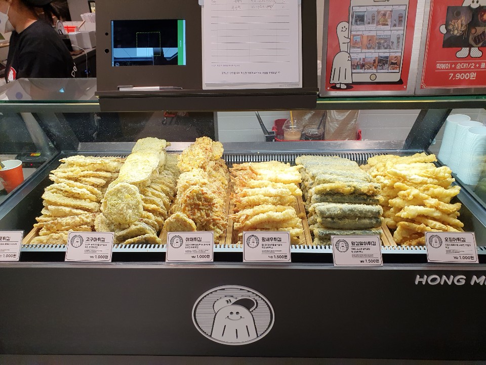 여느 분식집과 마찬가지로 김말이와 오징어 튀김을 비롯해 야채 튀김 고구마 튀김 새우튀김이 있네요~