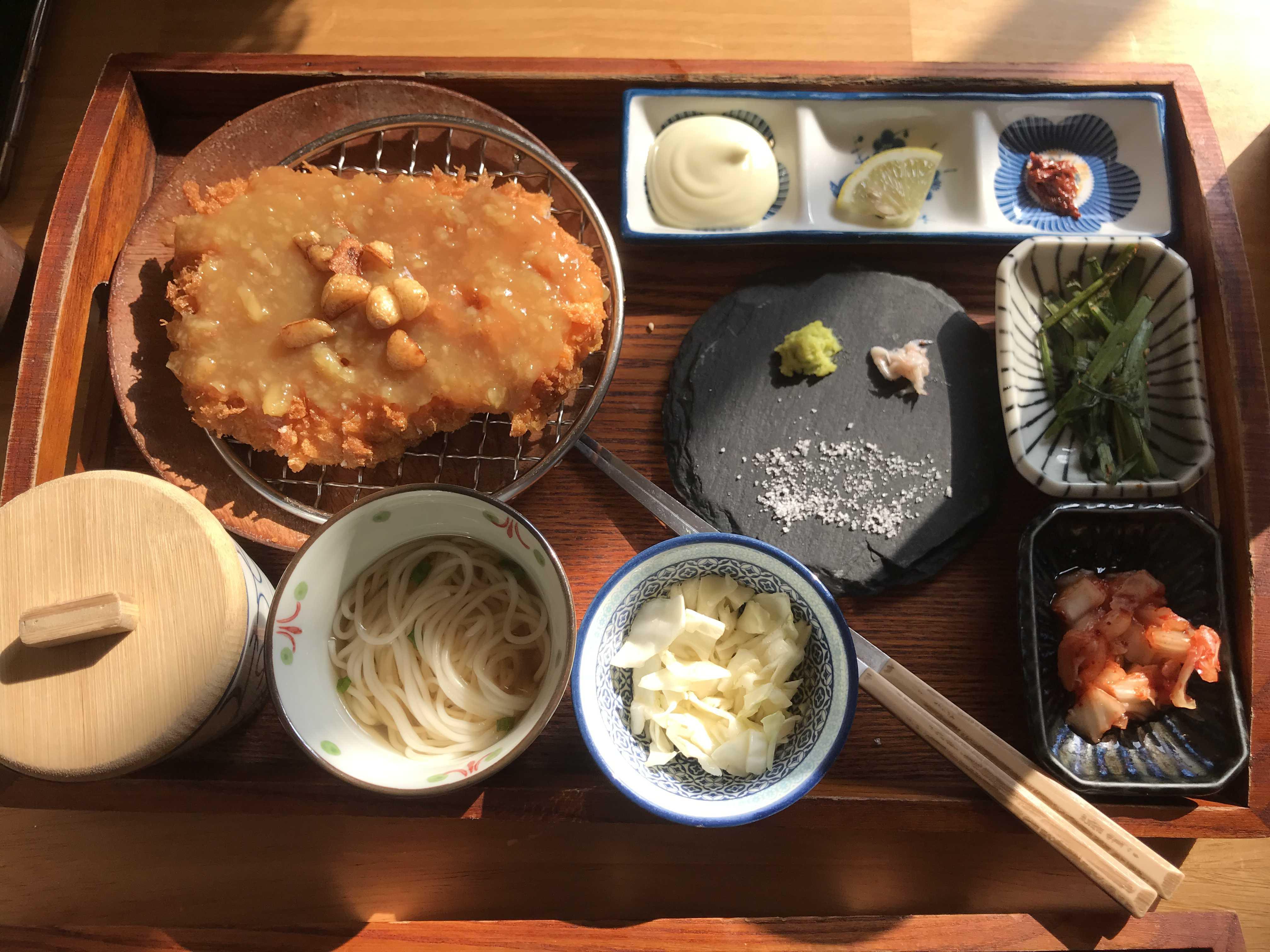 그외에는 다른 카츠에 제공되는 밑반찬과 밥과 국수가 함께 곁들어져 나오는 모습이예요~