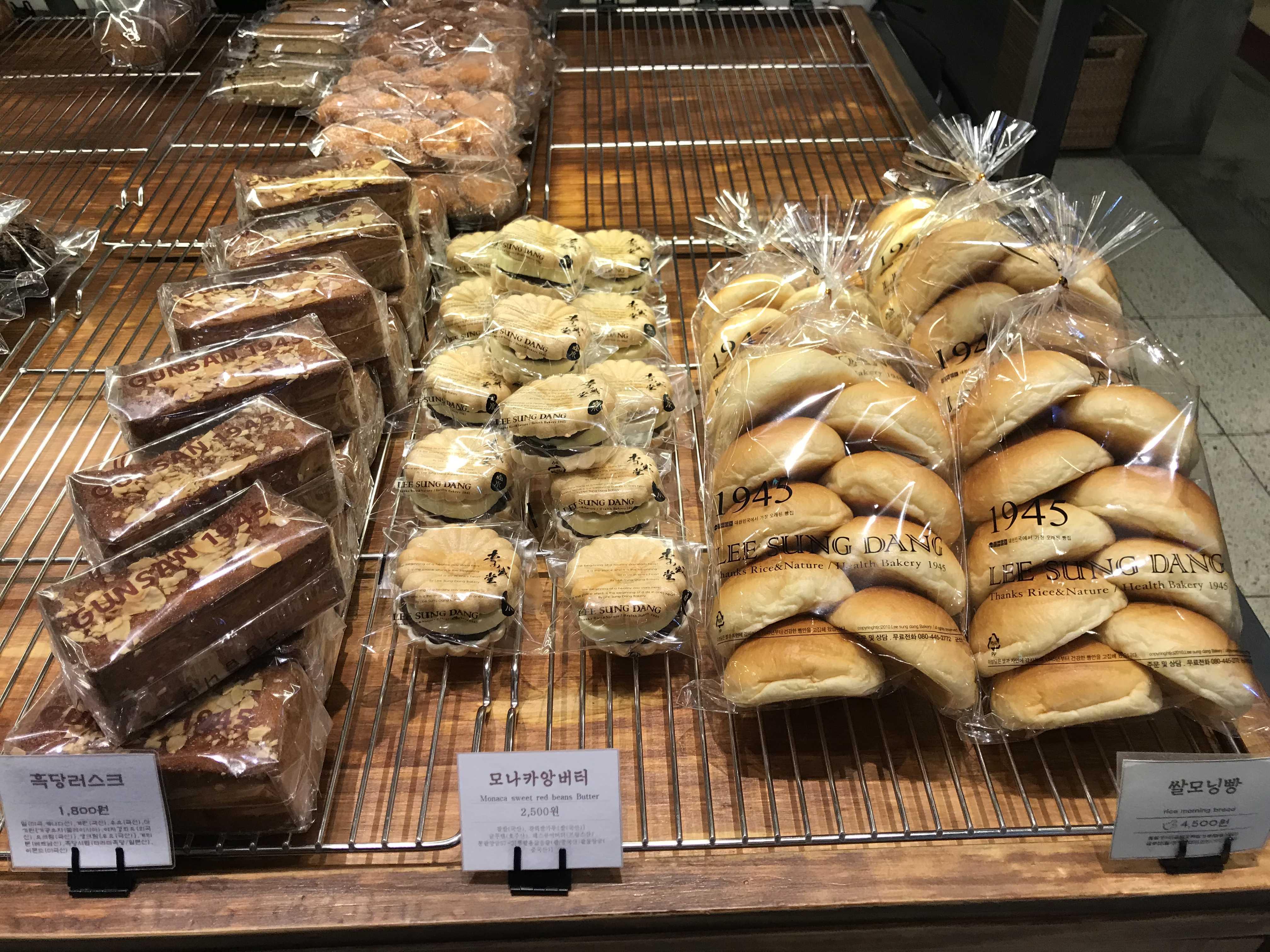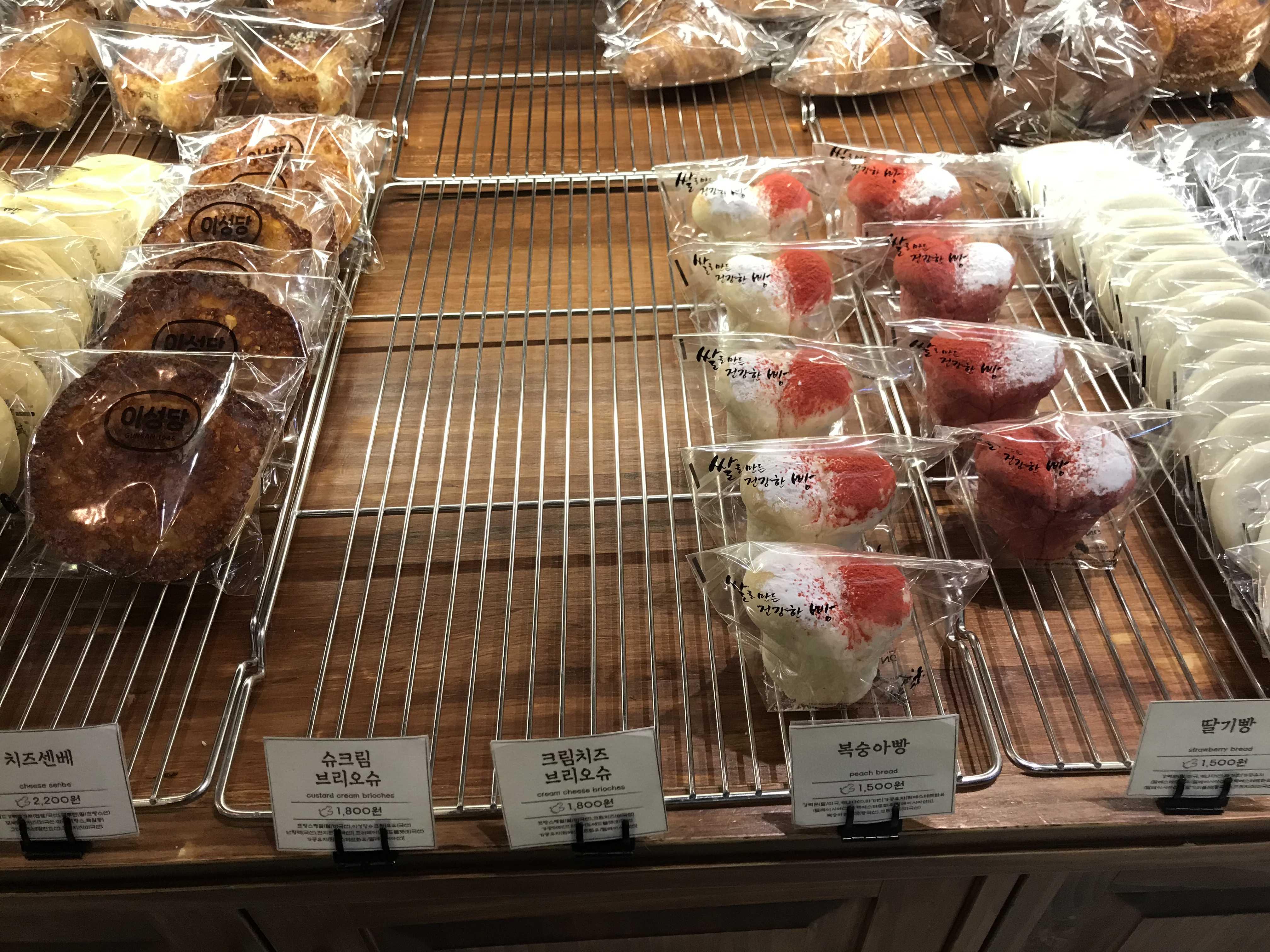 넓고 쾌적한 매장크기에 비례하는 다양한 종류의 빵들이 진열되어 있었어요~ 아마 군산 본점에 가면 더 다양하고도 많은 종류의 맛있는 빵들이 있었겠죠? 군산에 놀러가서 이성당을 방문해본 지인들 이야기를 들어보면 이성당이 워낙 유명하고 빵맛이 좋아서 대기가 어마어마 하다고 하던데 빵 맛이 어떨런지 기대가 되네요ㅎ