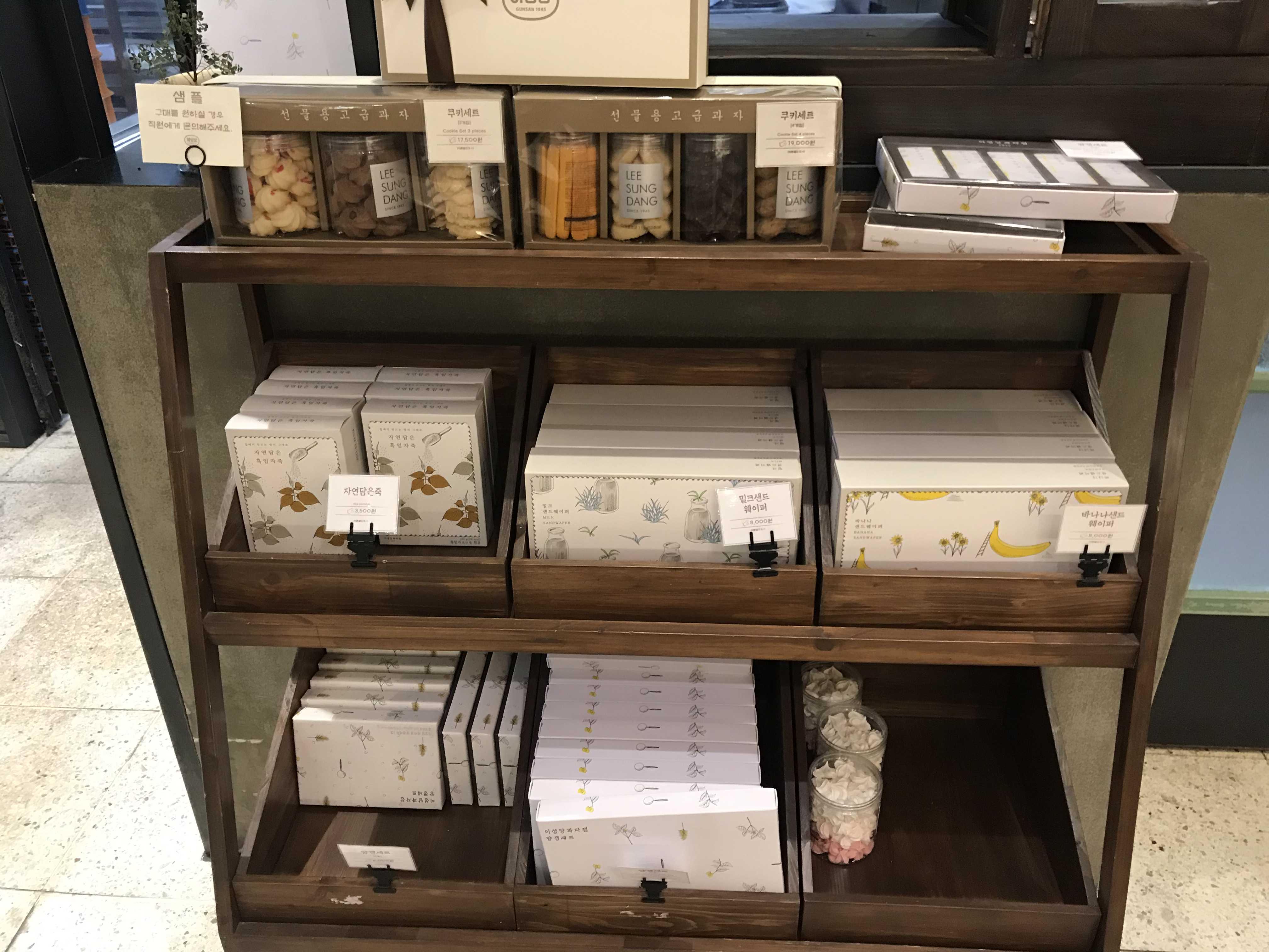 선물용으로 좋을법한 과자류도 상자 포장이 되어져 매장 한켠에 주르륵 진열되 있어요^^