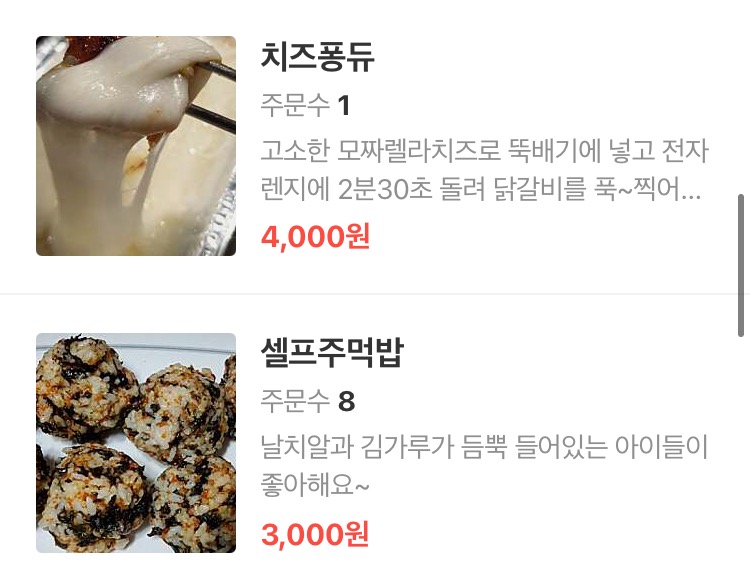 사이드 메뉴로는 주먹밥과 치즈퐁듀가 있어요~