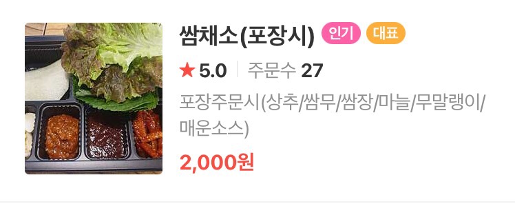 포장 주문시 상추와 쌈무 쌈장과 마늘 무말랭이등의