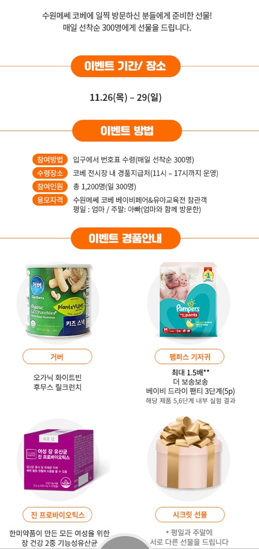 일찍 가신다면 매일 선착순 300명에게 주어지는 얼리버드 선물도 득템할 수 있는 기회도 노려보세요ㅎ