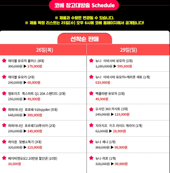 오픈 첫날인 26일 목요일과 마지막날인 29일 일요일에 열리는 창고대방출 세일 품목들도 한번 보시구요