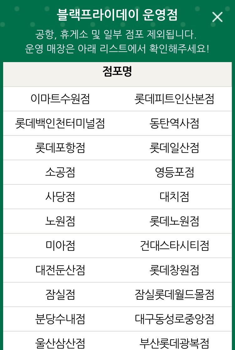 해당 행사를 운영하는 매장들을 확인 하셔서 집근처 매장에서 이용해보시면 좋을것 같아 공유해봅니다^^