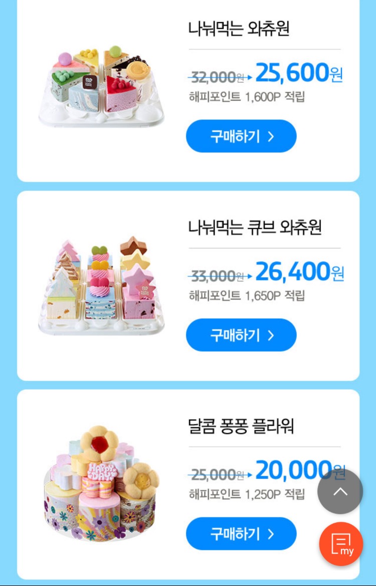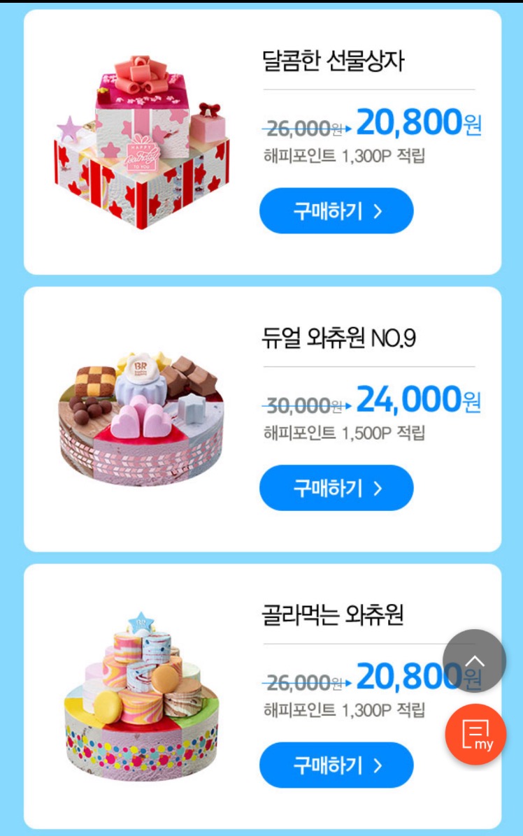 꽤 많은 종류의 케이크들이 행사품목이죠?