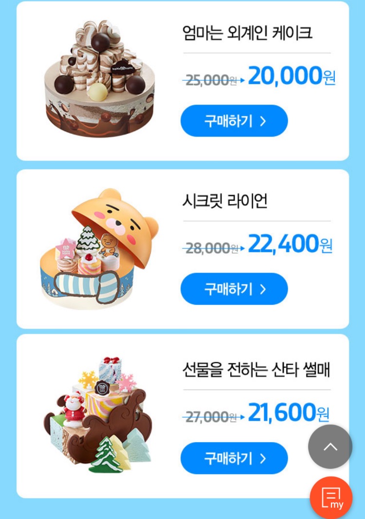 다양한 종류의 크리스마스 케이크들이 할인행사에 포함되어 있어요~^^