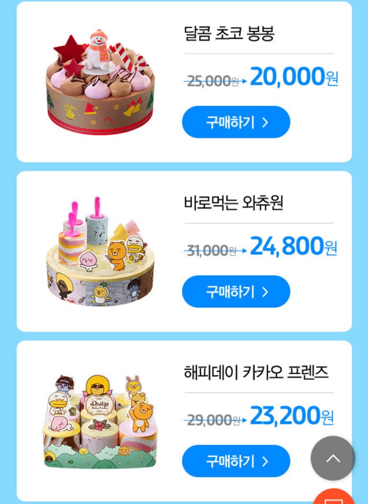 가장 저렴한건 스노우 포레스트 케이크로 19,200원이네요^^