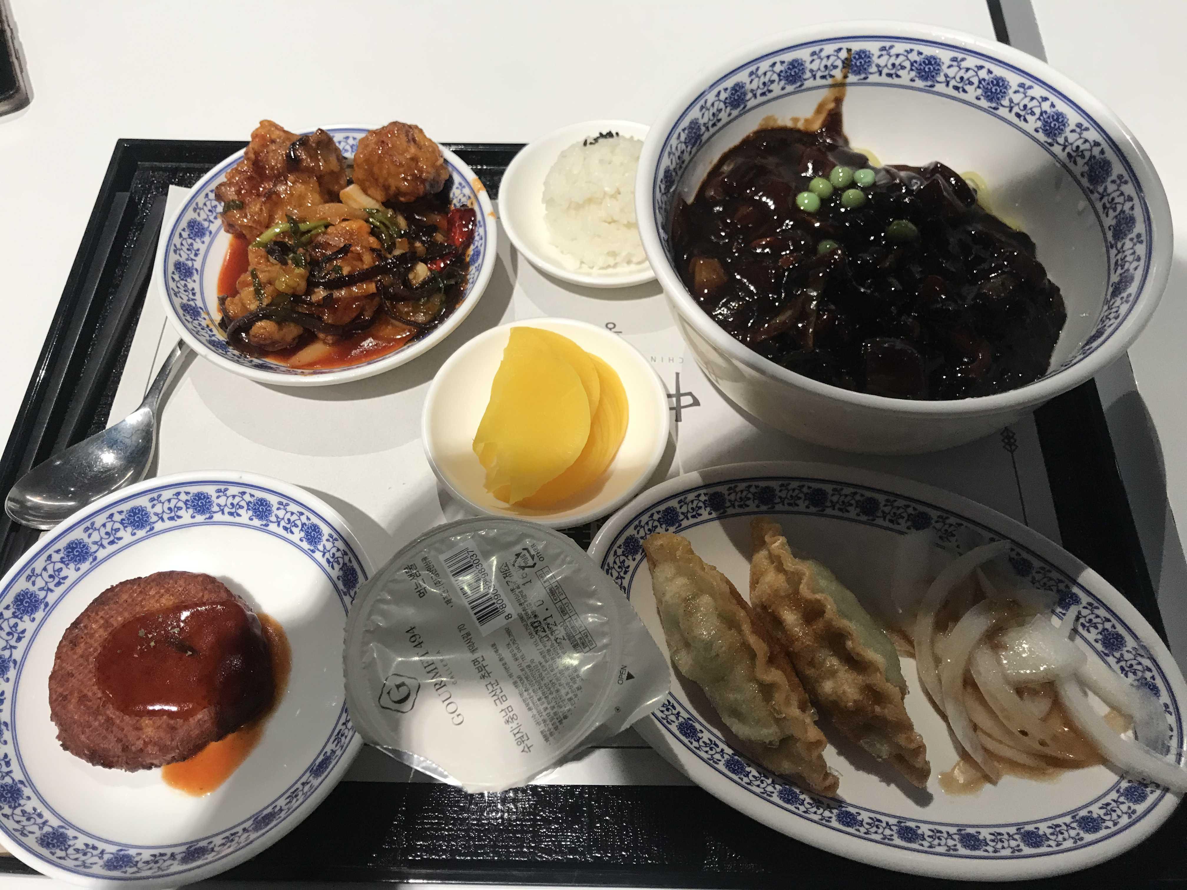 세트구성은 자장면, 깐풍기, 군만두, 못난이 멘보샤가 있어요~