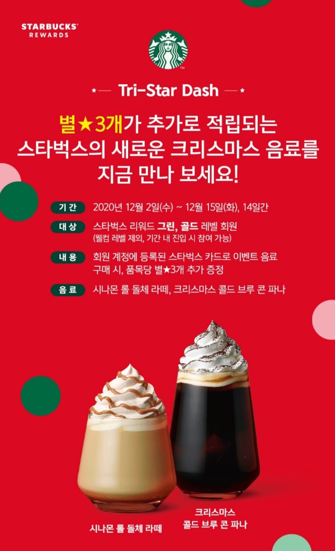 시나몬 롤 돌체라떼 or 크리스마스 콜드 부르 콘 파나 주문시 = 이벤트 별 3개