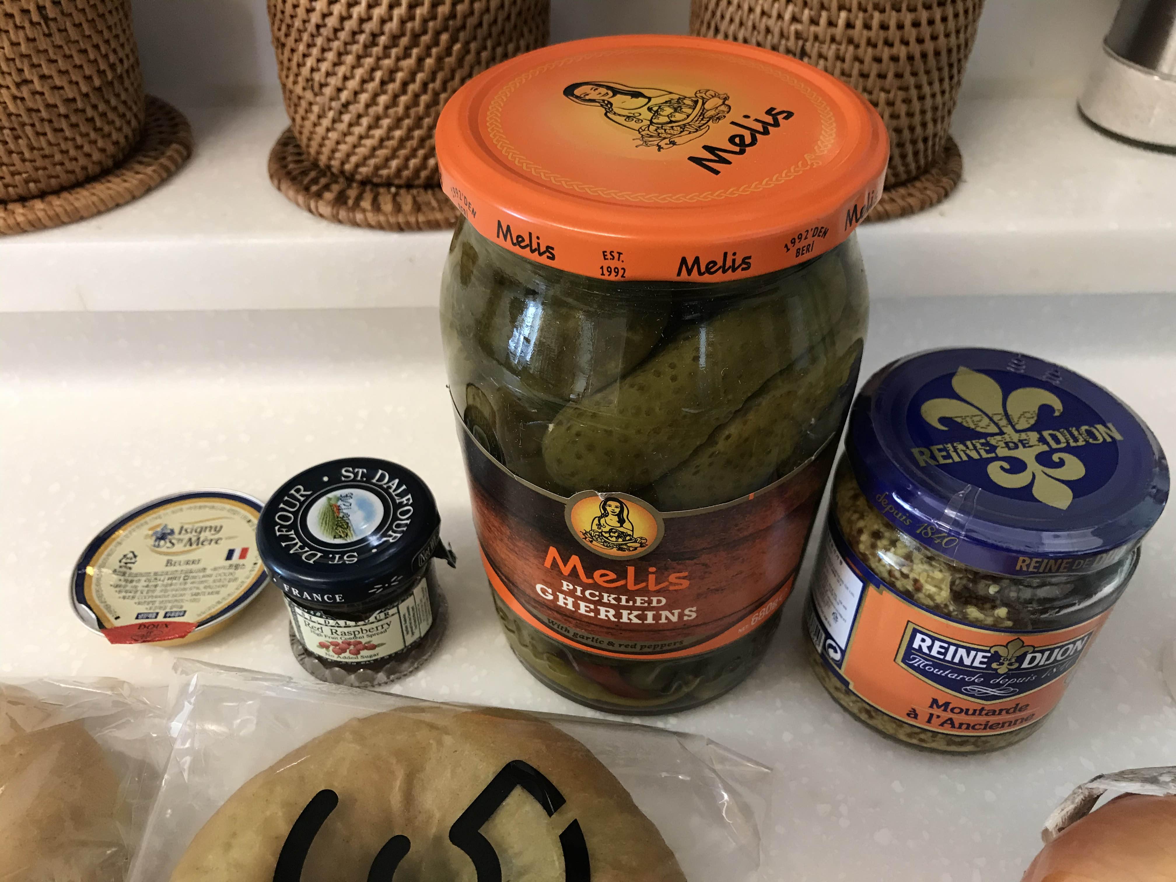 이즈니버터& 샹달프 딸기잼 그리고 멜리스 피클과 르네디종 홀그레인 머스터드를 사용했구요