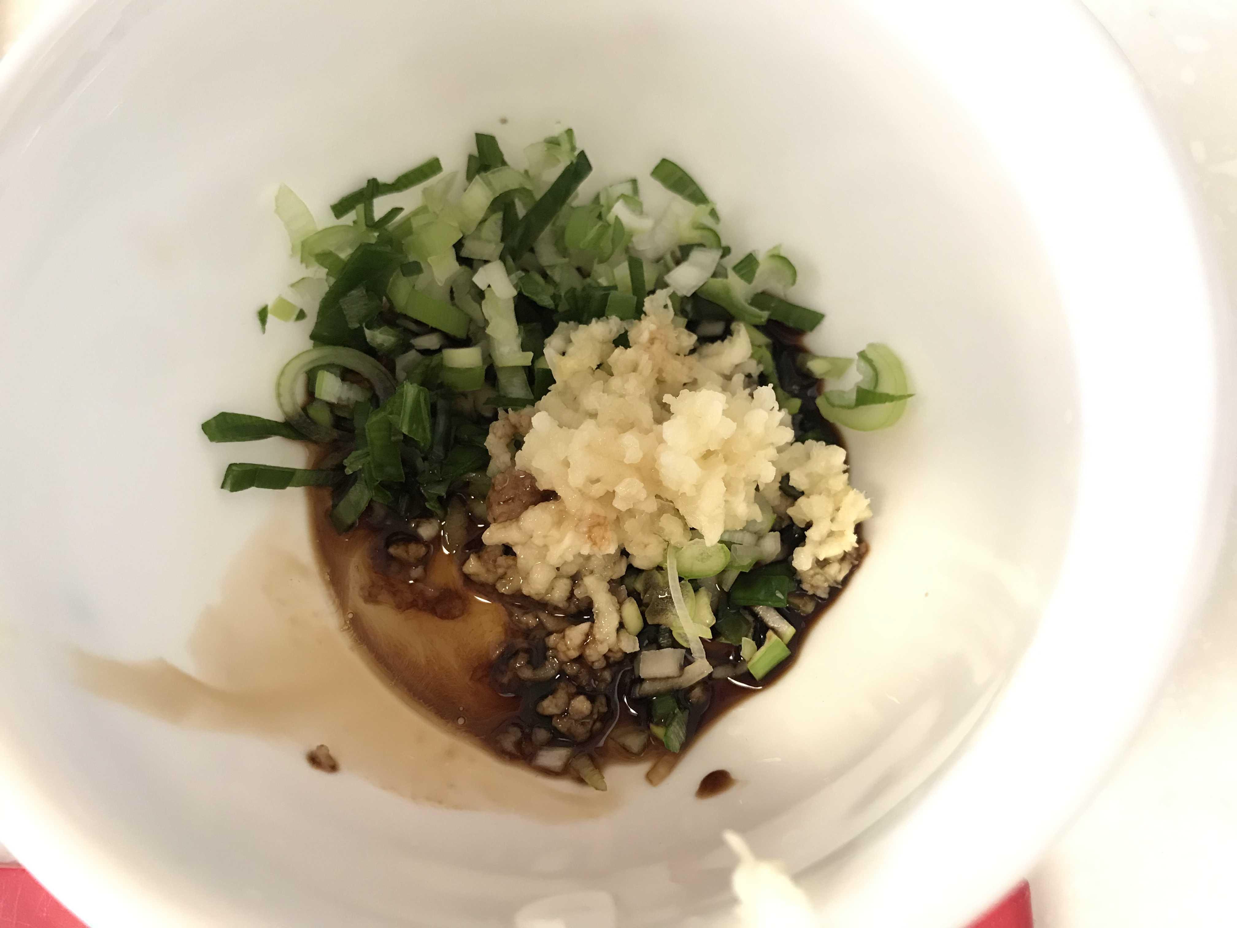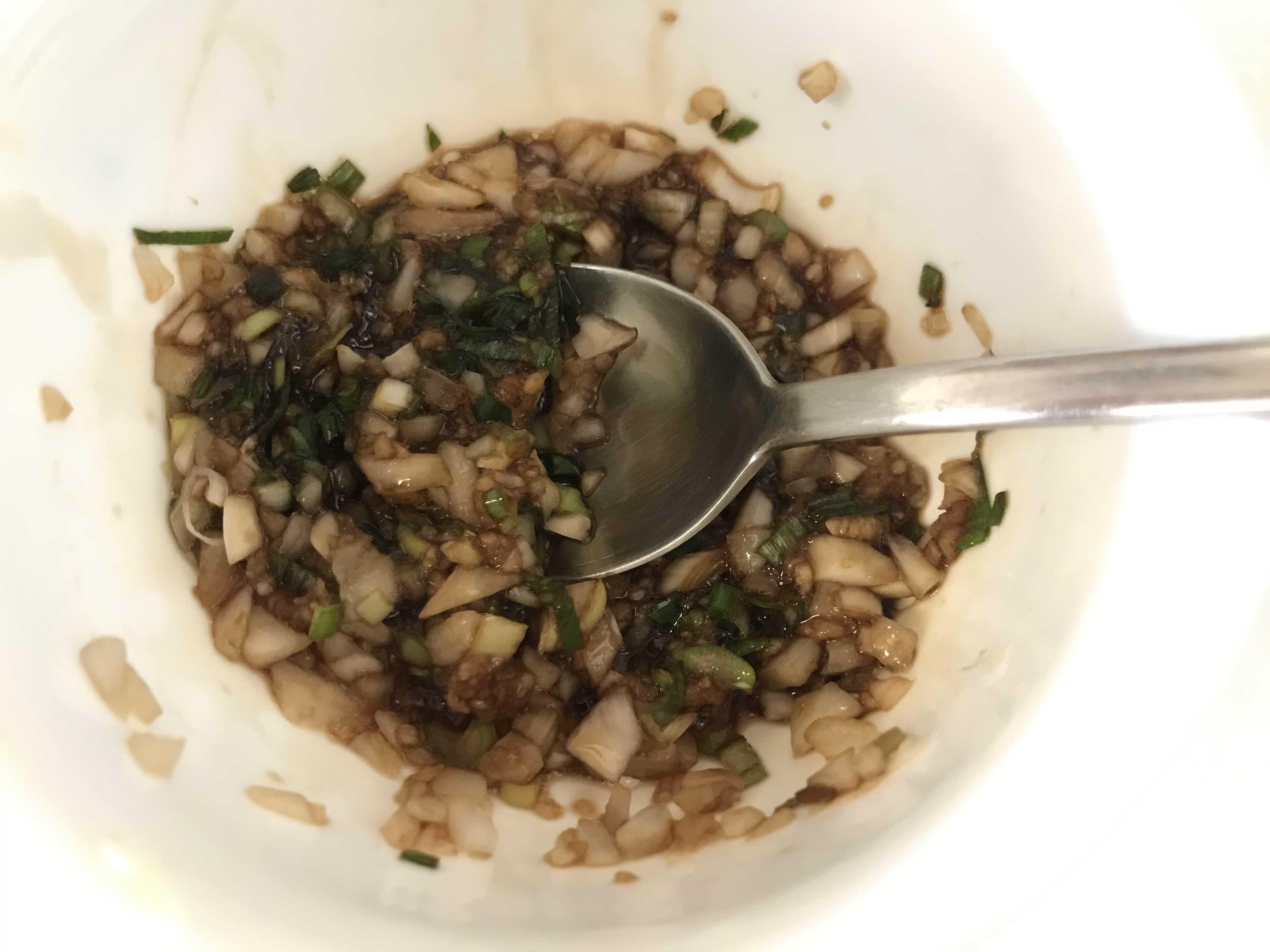 잘게썬파와 다진 마늘에 다진 양파에 양조간장 한수와 매실청 한스푼을 넣고 섞어줍니다^^