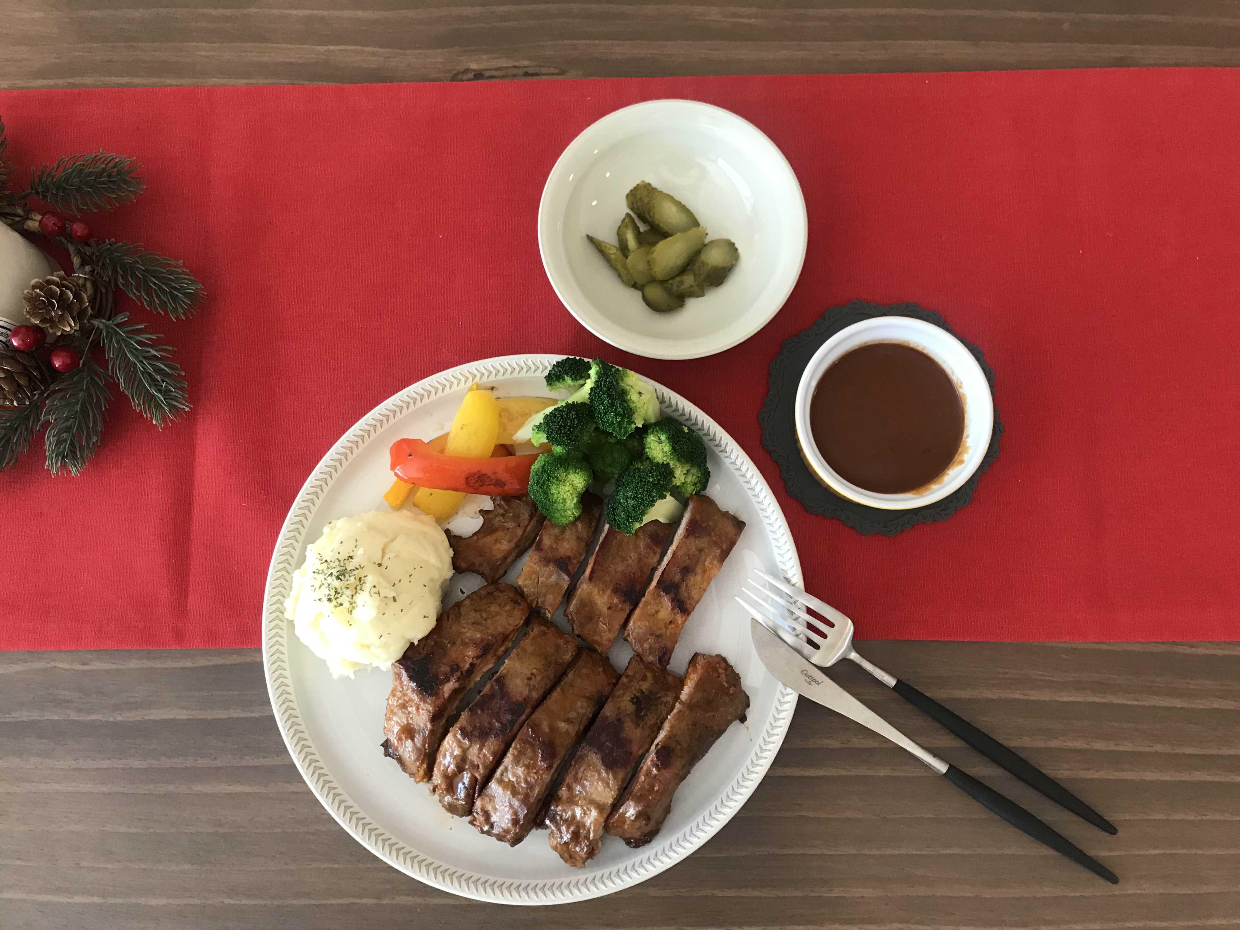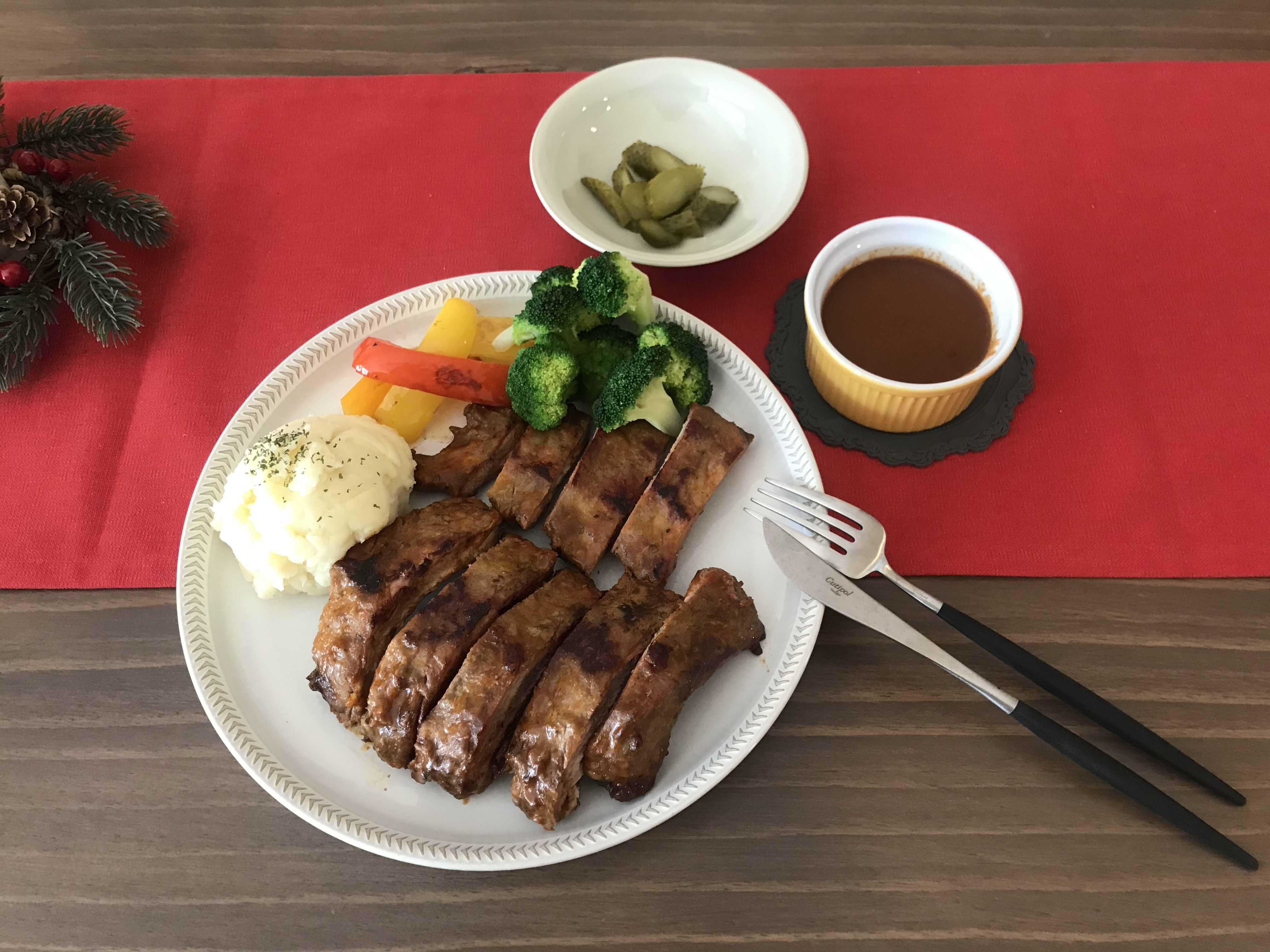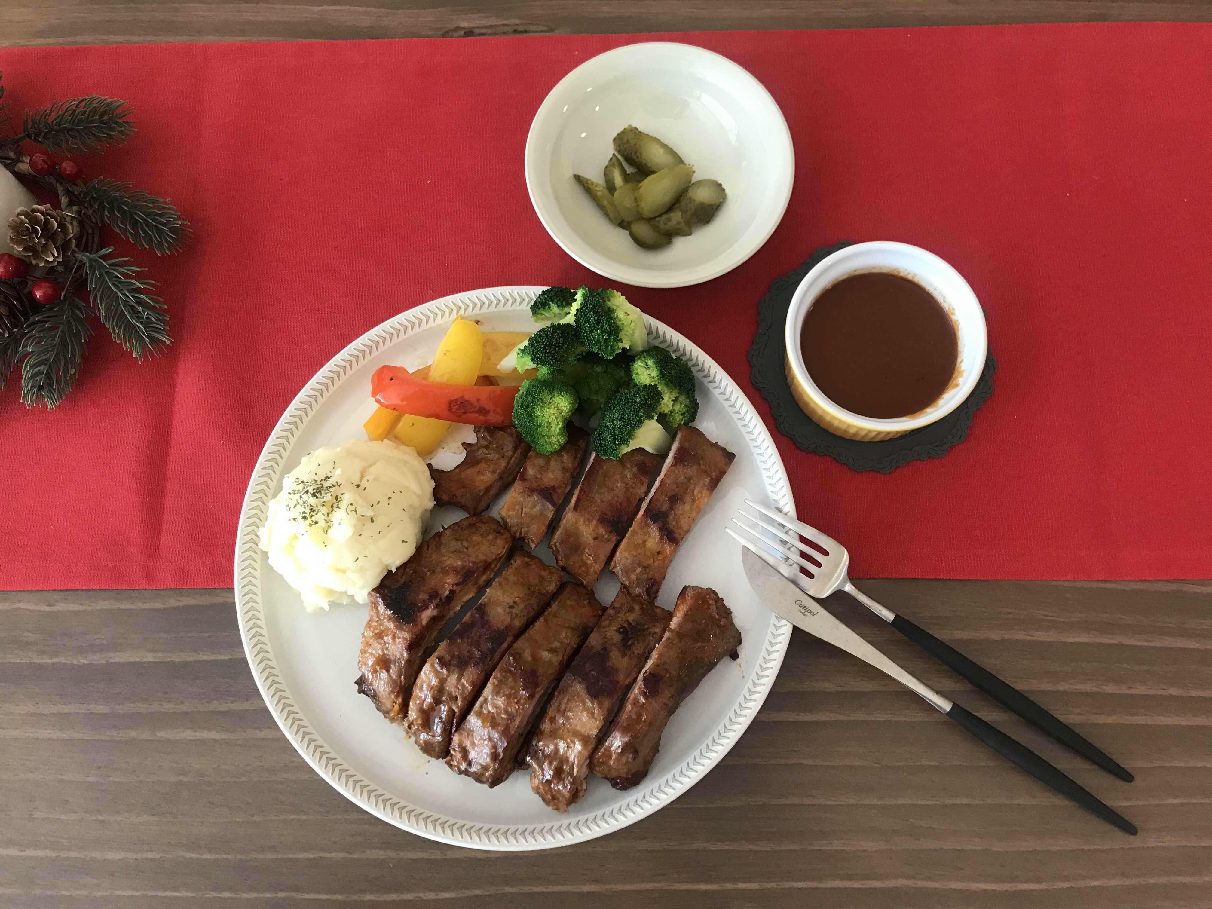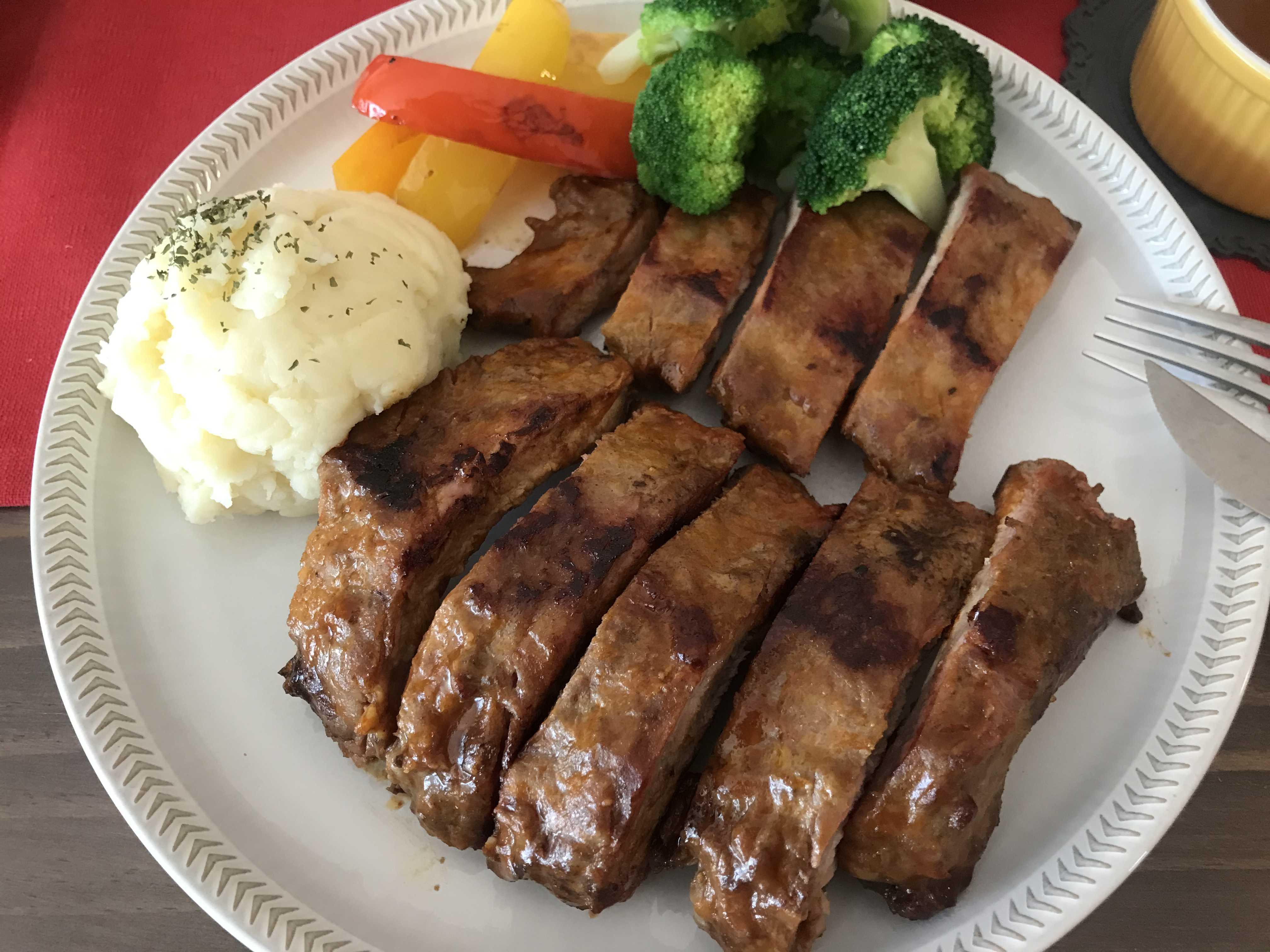 저는 폭립만 먹기 허전해서 함께 먹을 요량으로 간단하게 매쉬포테이토를 만들어 곁들이고 집에 잠자고 있던 파프리카도 꺼내 굽고 브로콜리도 데쳐서 함께 먹어 보기로 했어요^^