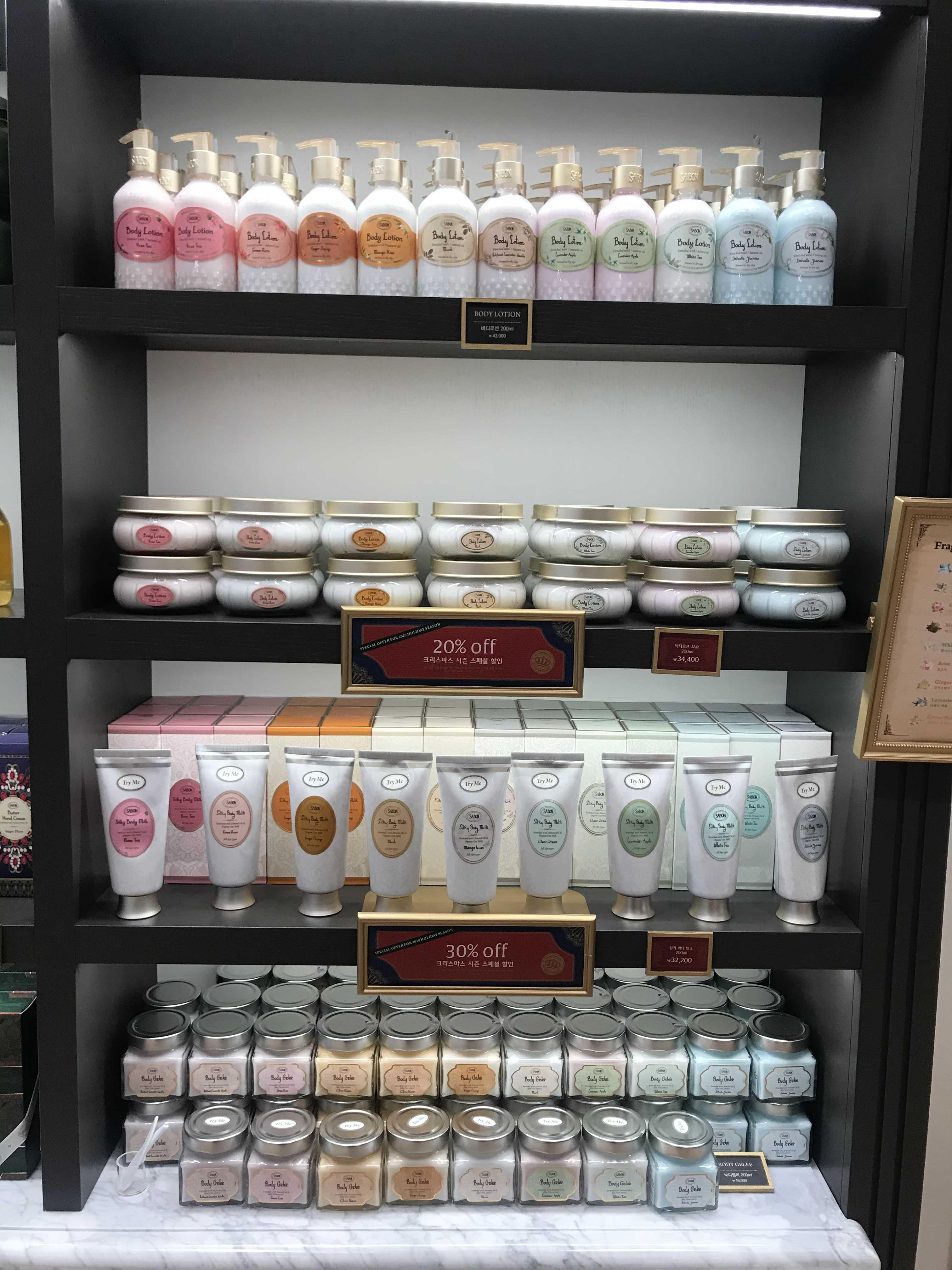 여러가지 다양한 사이즈와 향기의 핸드크림들이 이렇게 한군데 모여있어요~