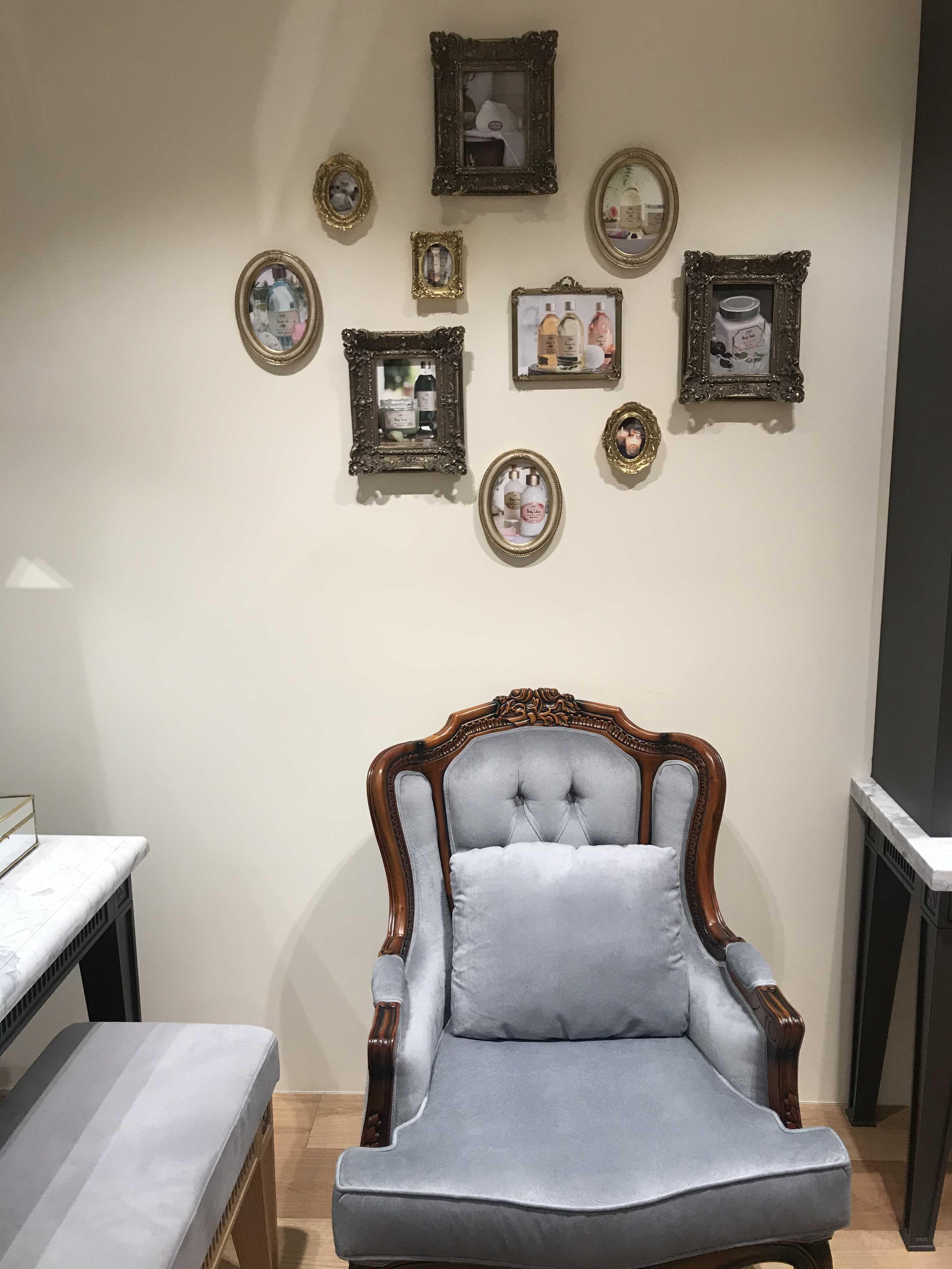 매장안쪽 우측에는 예쁜 화장대 위로 스킨케어 제품들을 보실 수 있는데요~