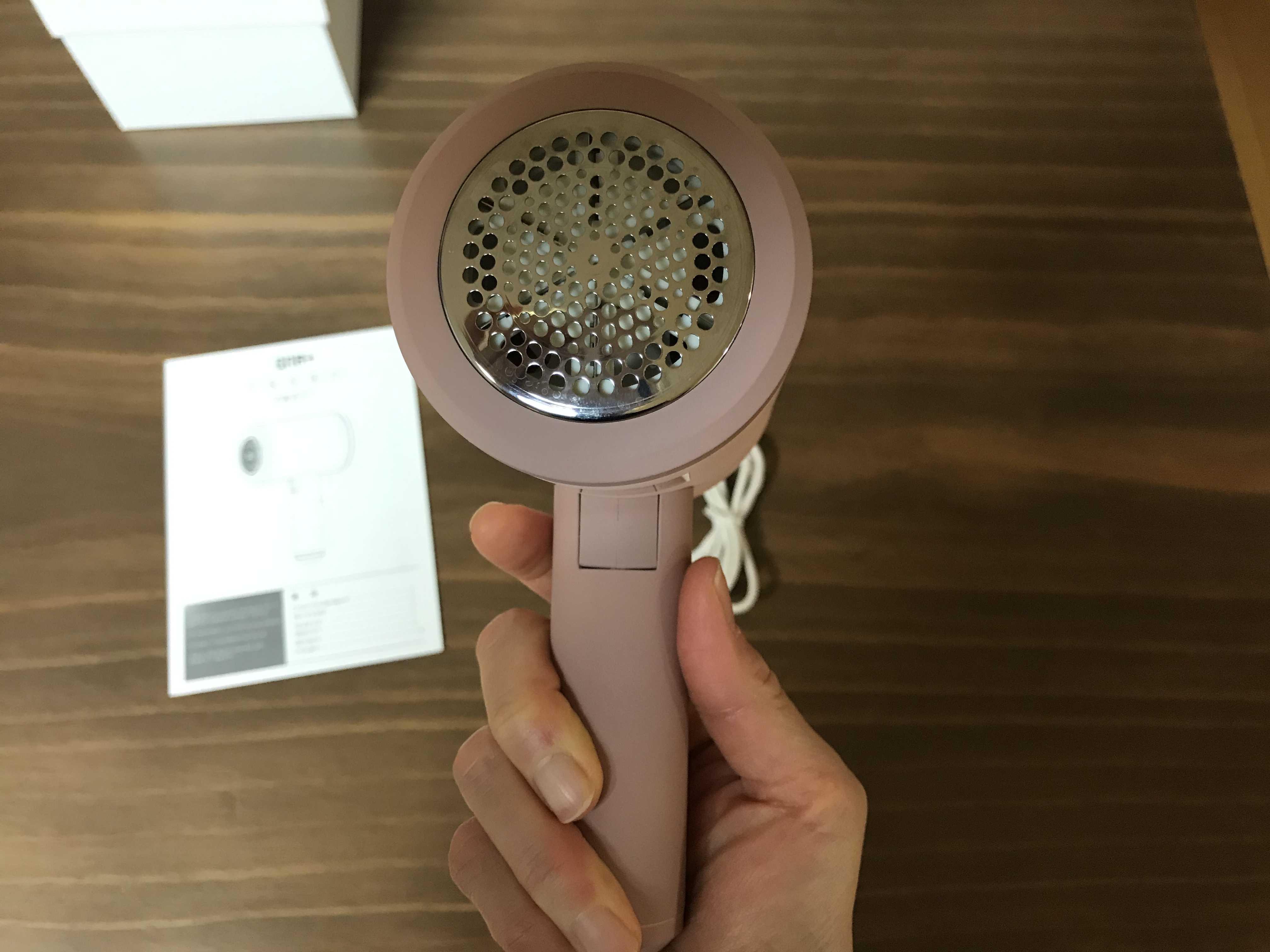 보풀제거기 모양이 손잡이를 아래로 펴보니 뭔가 헤어드라이어 같은 느낌이 나네요ㅎㅎ
