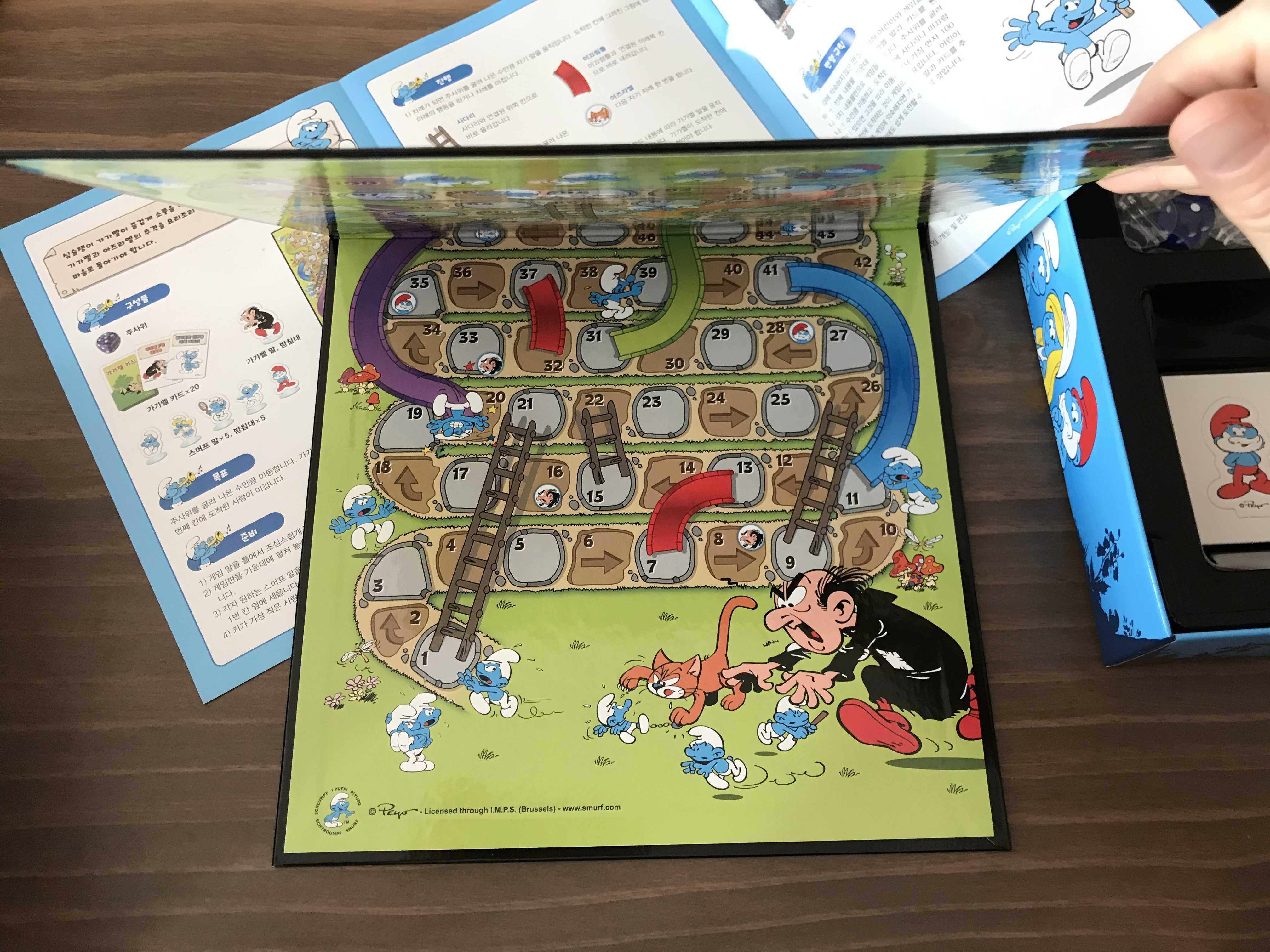 스머프게임 보드판은 보시다 시피 양장본책 하드 커버 만큼