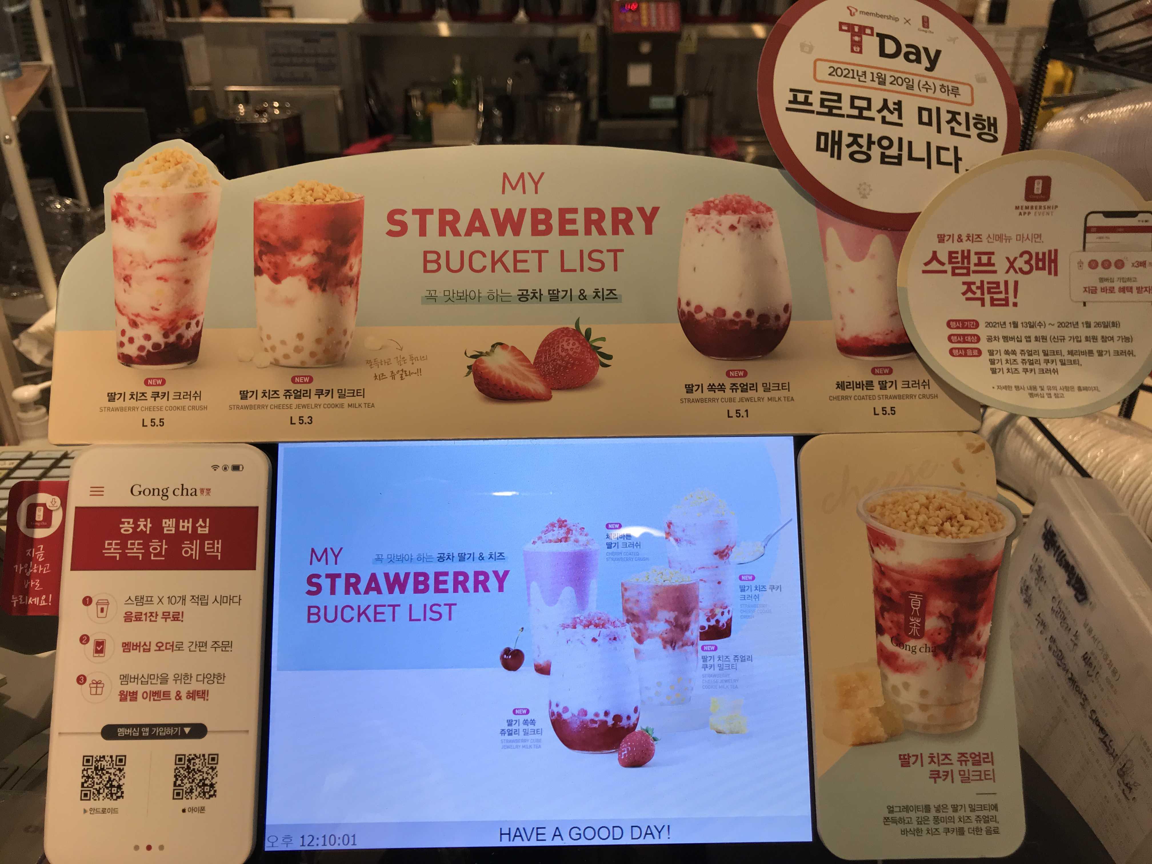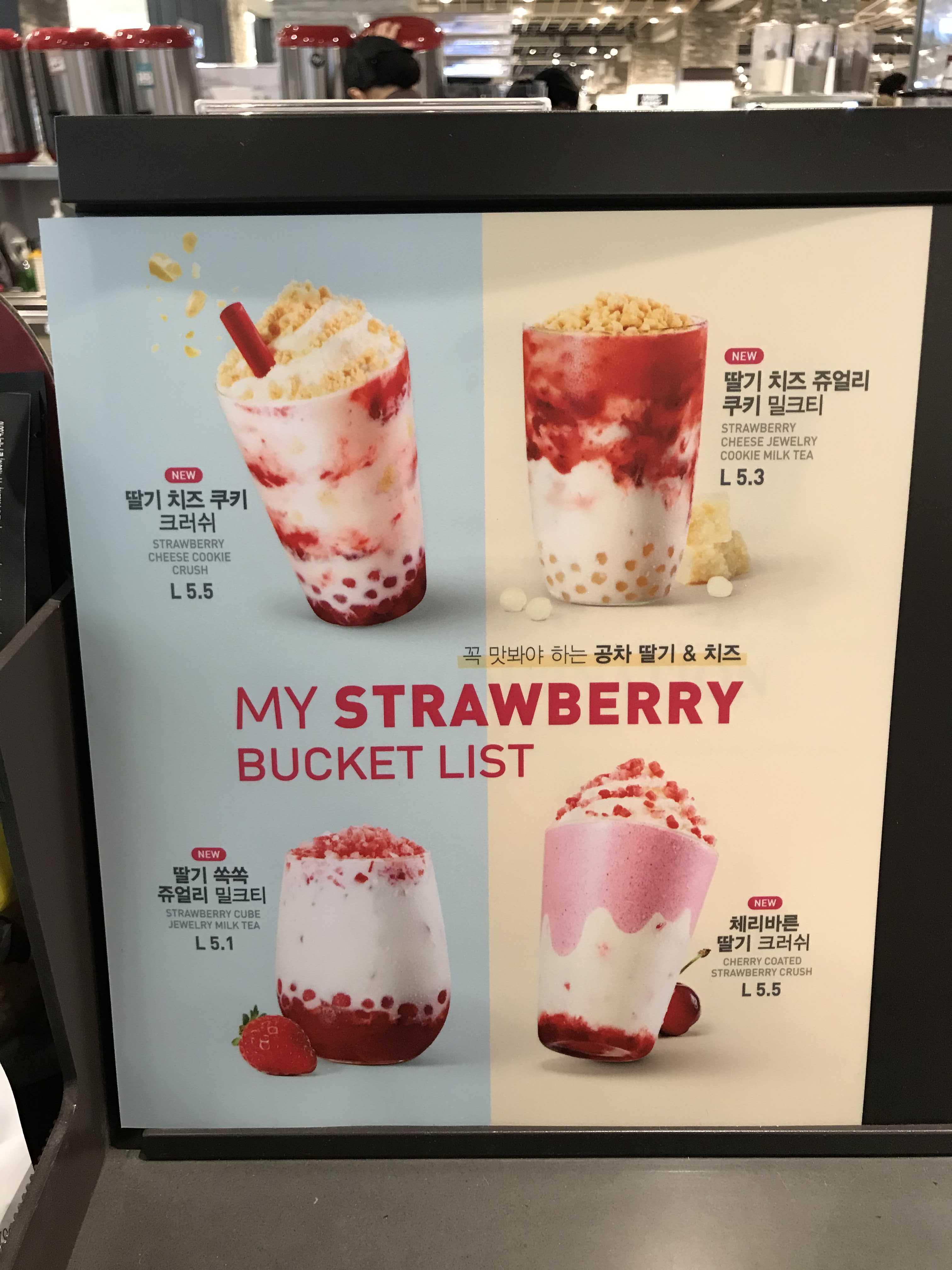 딸기와 치즈를 테마로한 공차의 신메뉴들이예요