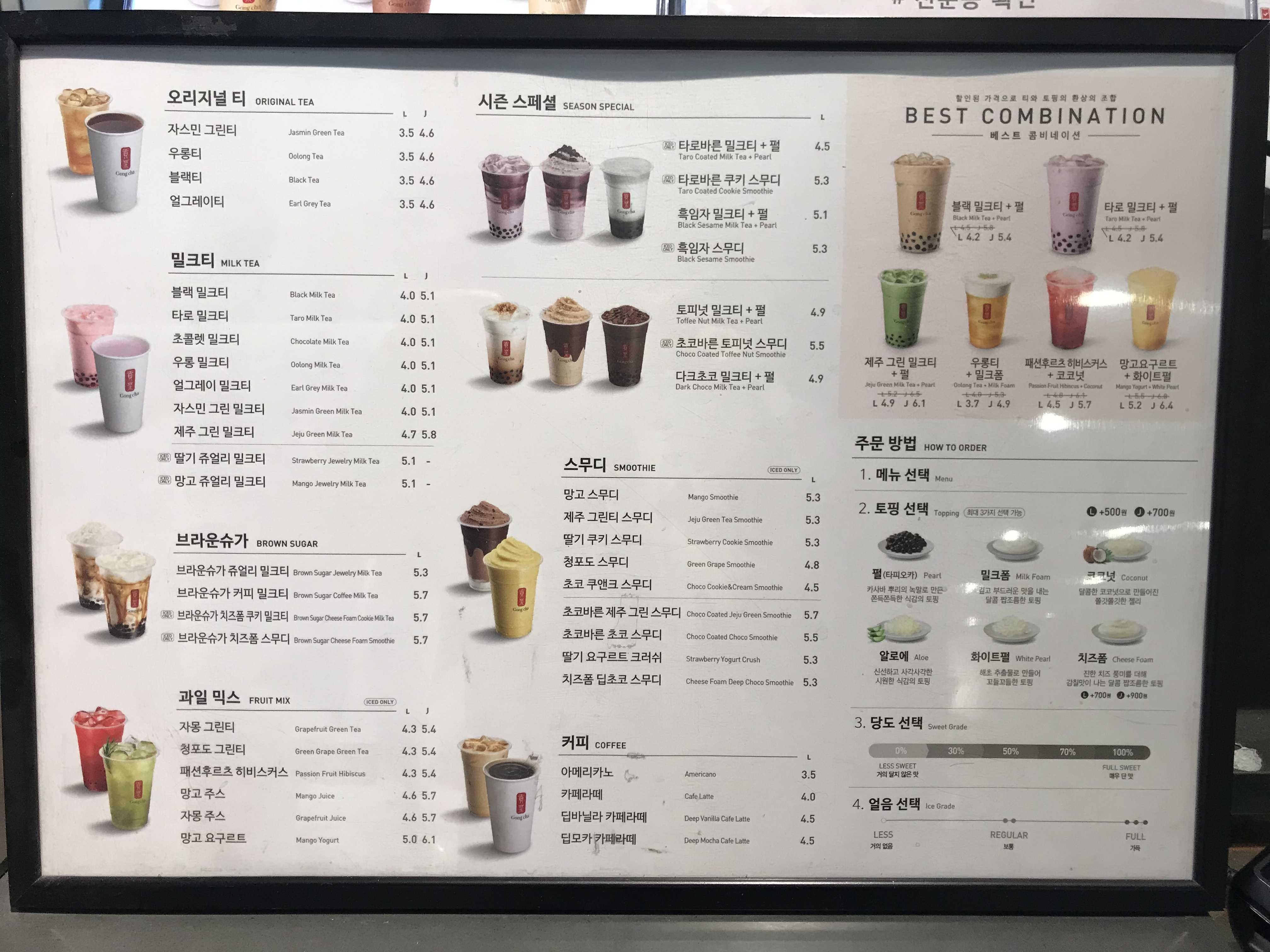 밀크티 이외에도 다양한 메뉴가 가득한 공차 메뉴판도 찍어봤어요~