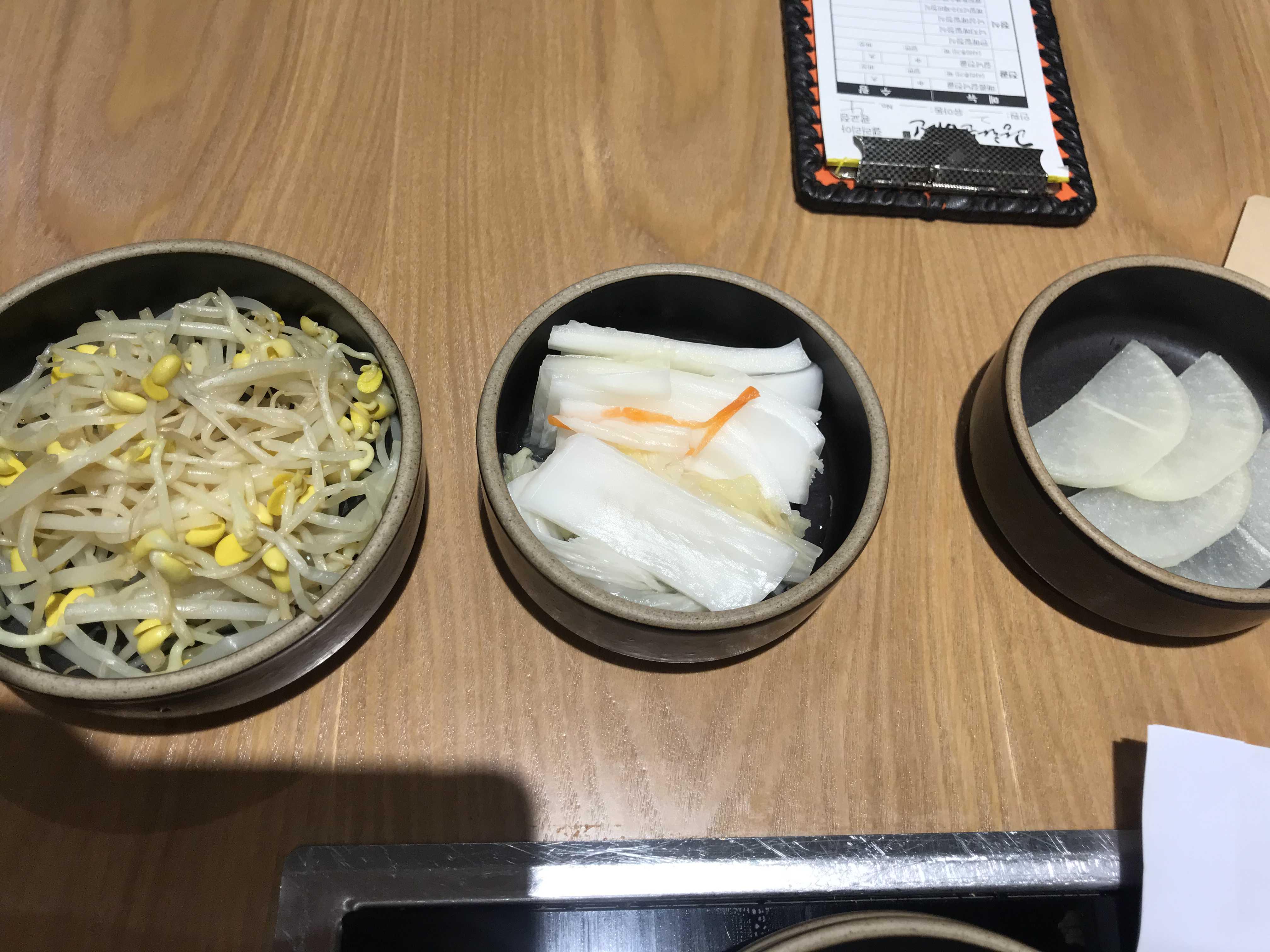 밑반찬으로는 요렇게 백단무지와 백김치 그리고 콩나물이 제공되는데요~