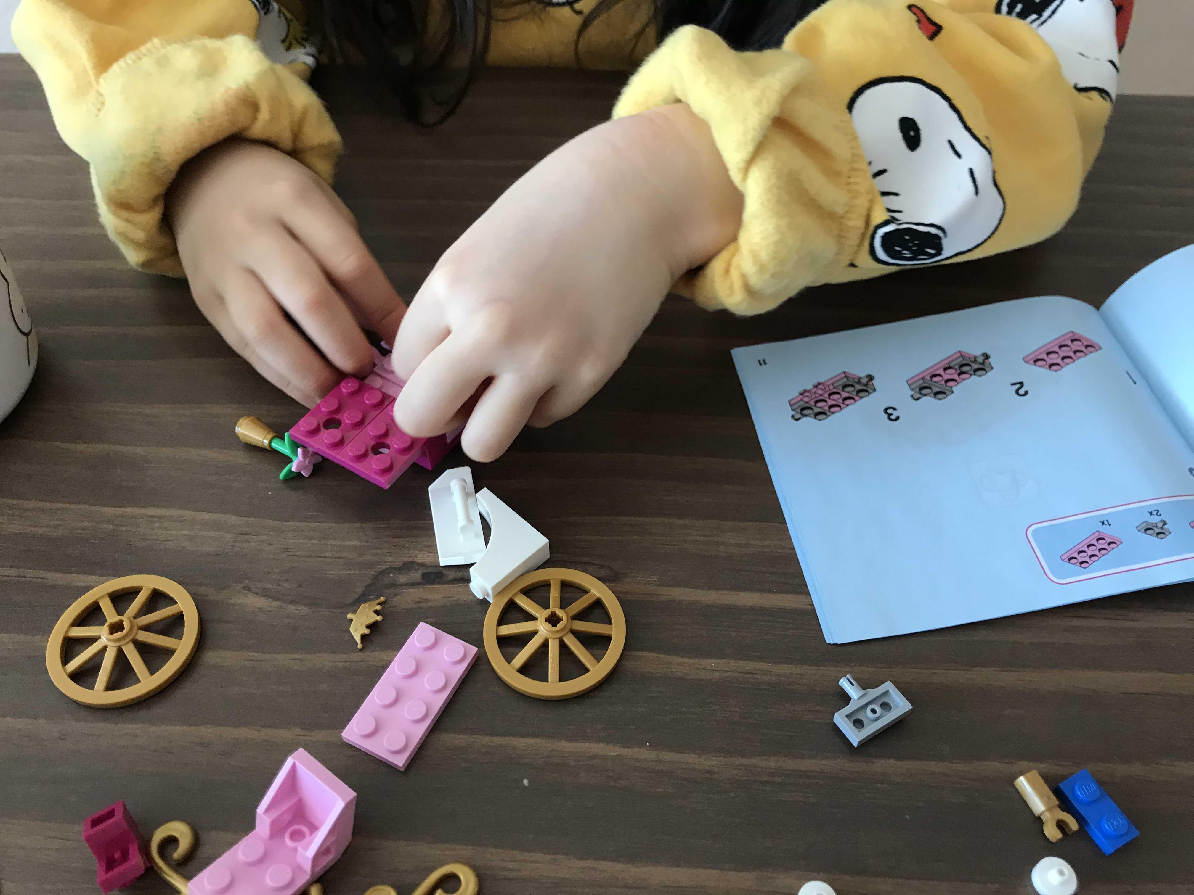 친척 언니 오빠에게 물려받은 레고 듀플로를 졸업하고 처음으로 레고 디즈니 프린세스제품을 구매해보게 되었어요~ 영유아기때 아주 잘 가지고 놀았던 듀플로보다 좀 더 작고 섬세한 블록 조립이 가능한 디즈니 프린세스 시리즈예요~ 제가 구입한 오로라 공주의 왕실마차 제품은 권장 연령이 5세 이상으로 이제 막 여섯살이 된 숭이에게 제격이지 싶어요^^