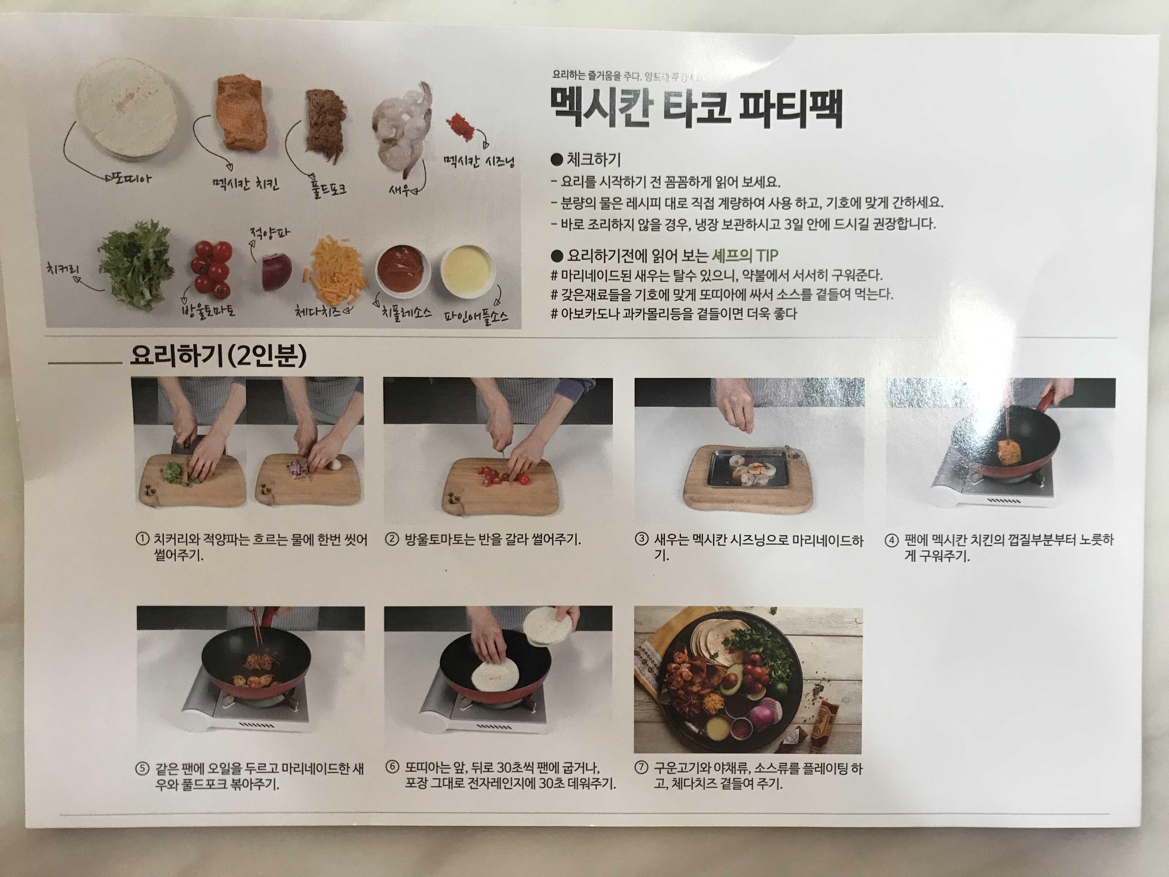 조리전 동봉된 앙트레 멕시칸 타코 파티팩의 설명서를 한번 읽어보고 조리법에 맞춰서 타코 준비를 해봤어요