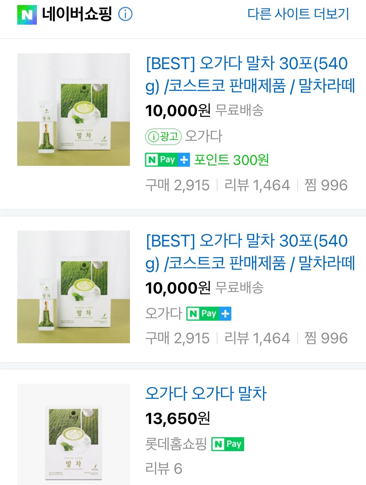 매월 5가 들어가는 5일 15일 25일이면 카페 오가다 매장에서 14,000원인 오가다 말차 MD제품을 9,900원에 판매하는데요~ 보통 인터넷 최저가도 비슷한 가격에 판매하긴 하지만 배송비를 포함하면 또 그리 저렴한편은 아니거든요~ 마찬가지로 코스트코에서도 오가다 말차 MD제품을 판매하는데요 코스트코 가격은 10,900원으로 역시 5가 들어가는날 카페 오가다 매장에서 사는 가격만큼 저렴하진 않답니다~