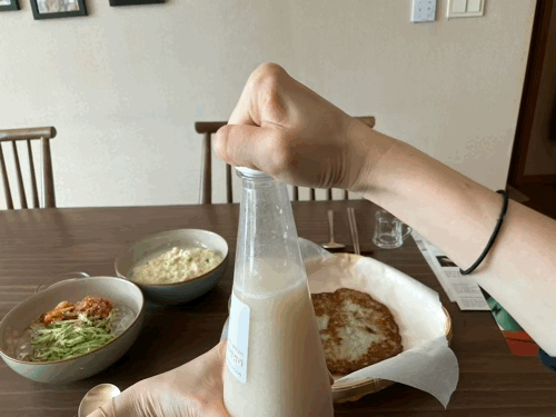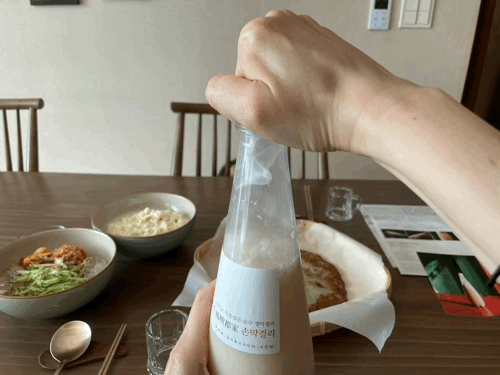 저는 처음에 뚜껑을 미처 다 닫기도 전에 팍!! 하고 막걸리가 튀어 나오는 바람에 조금 쏟아서 당황했는데요 막걸리의 상황을 예의주시하셔서 열고 닫기를 반복해 주세요