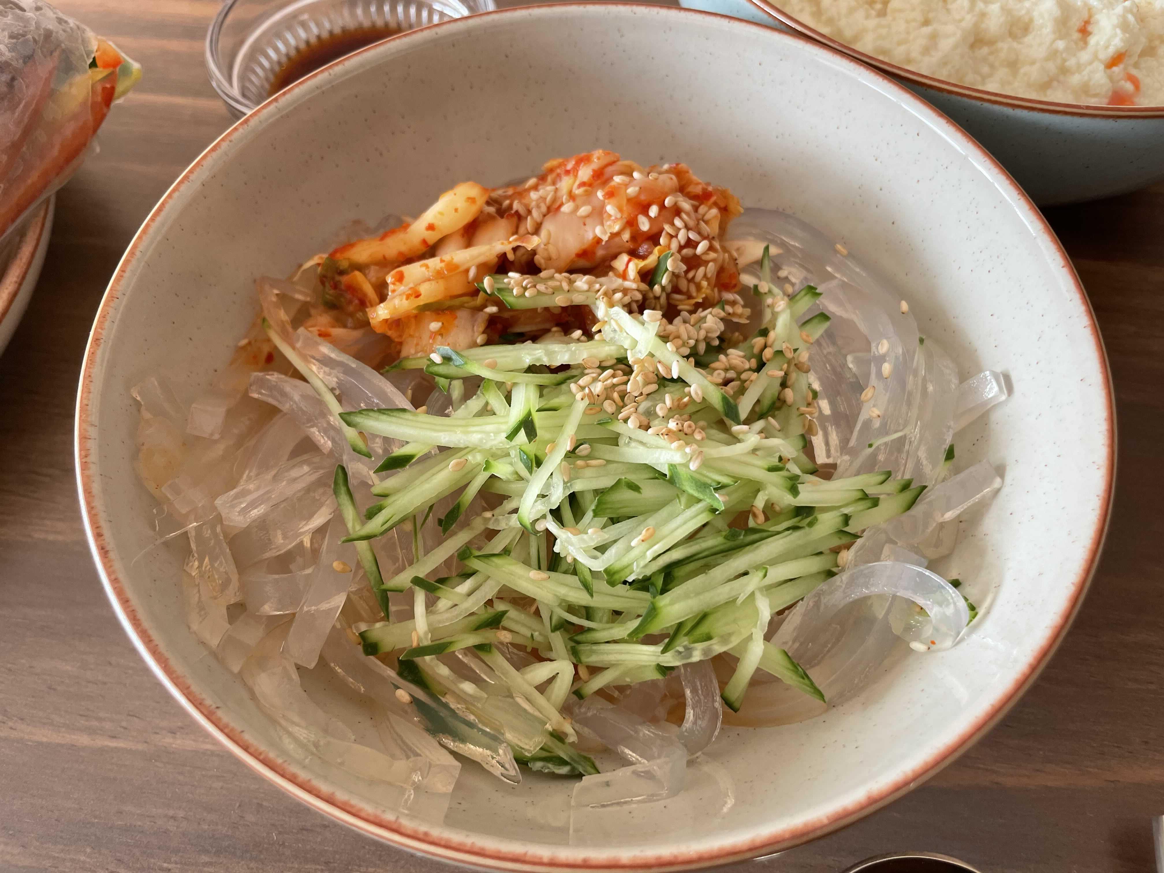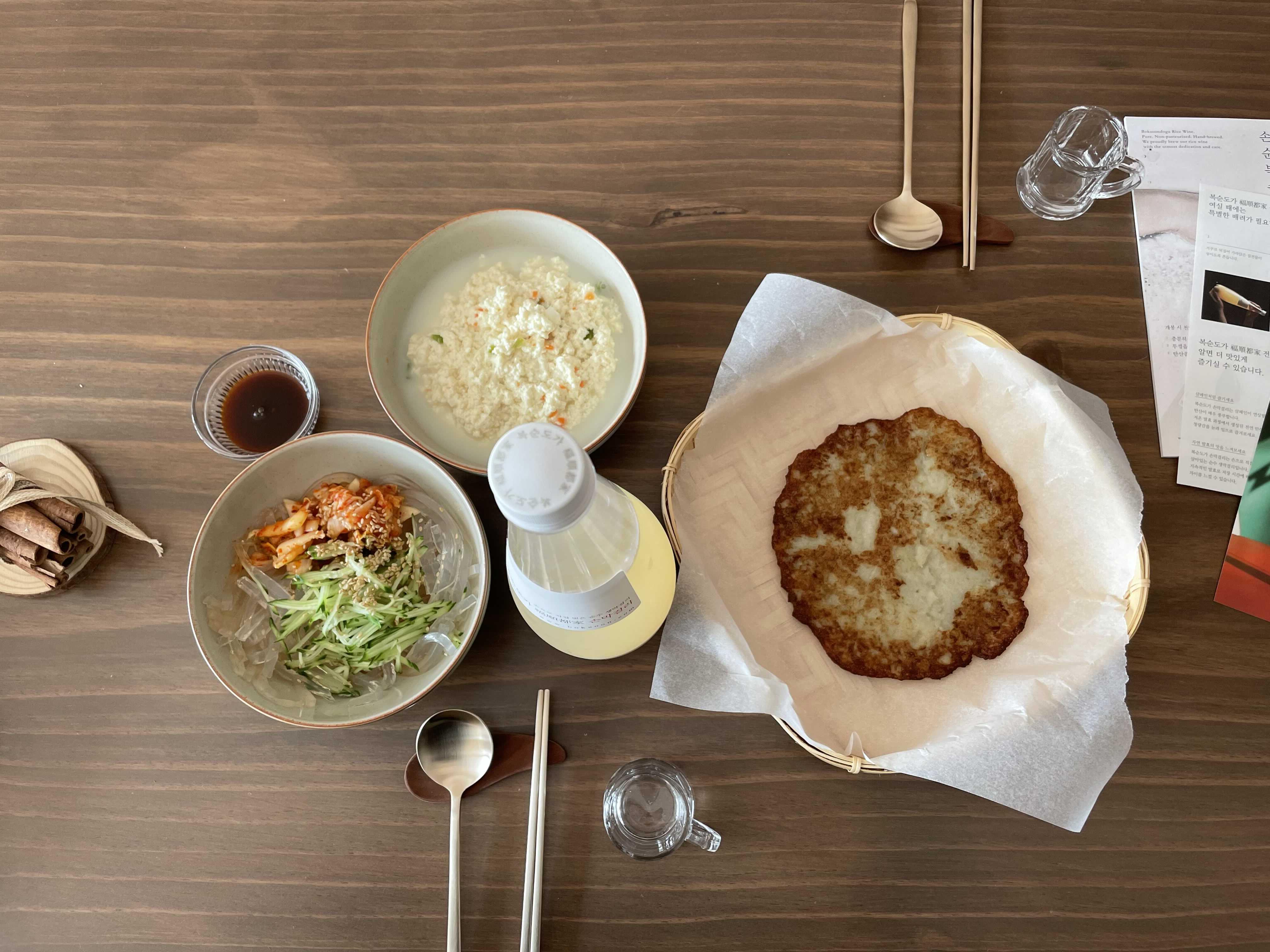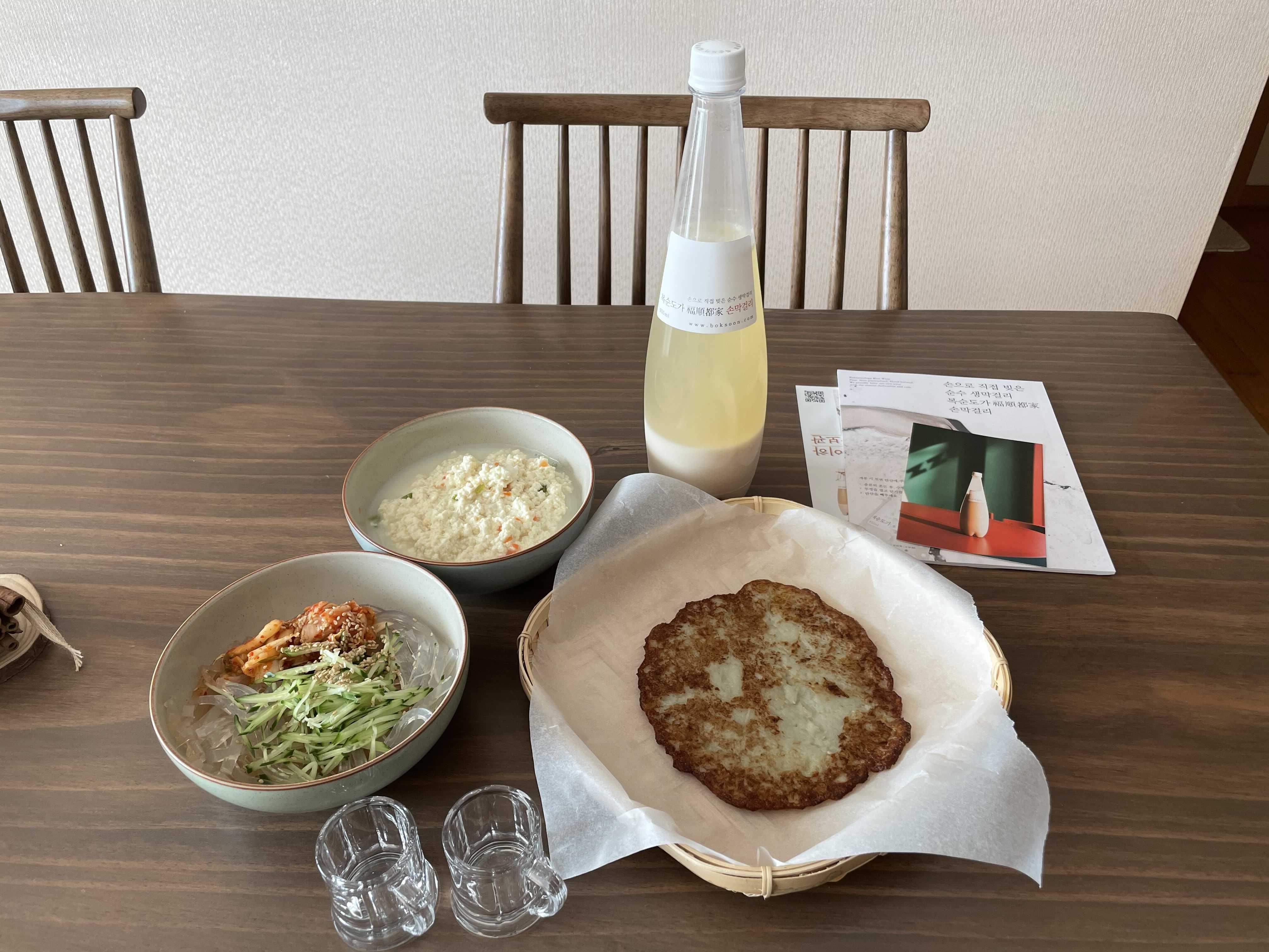 마침 신강 식품관에서 사온 재래식 손두부와 우뭇묵사발이 있어 감자전만 휘리릭 부쳐서 막걸리에 어울리는 주안상을 채려봤어요☺️