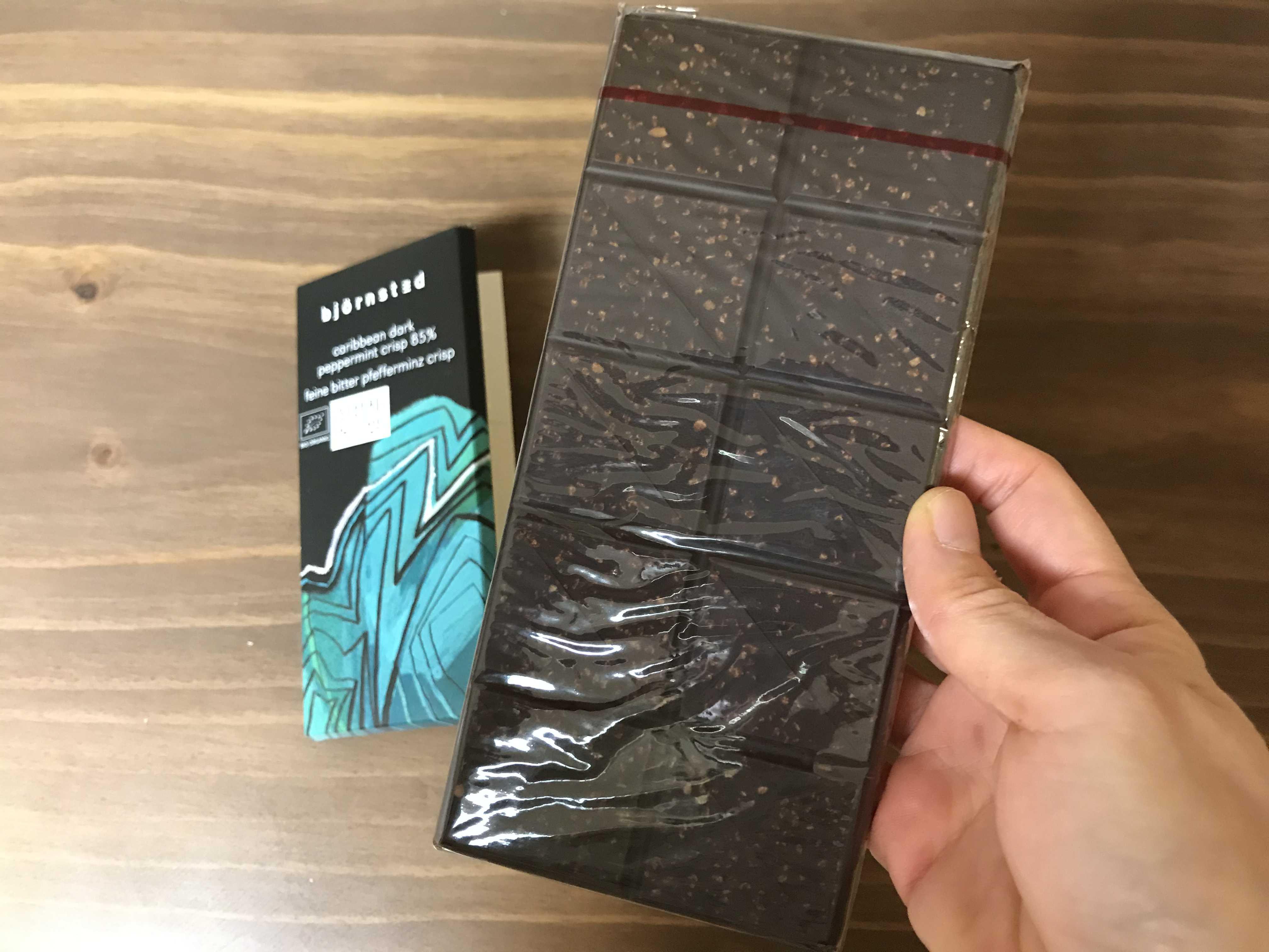 민트 초콜릿의 성분표도 살펴봤어요 유기농 코코아 매스와 유기농 코코아 버터가 각각 70, 15퍼센트로 기본적인 바탕은 다크 초콜릿이예요~ 거기에 페퍼민트 크리스피가 첨가되어 있어 아마도 바삭한 식감의 초콜릿일것 같네요