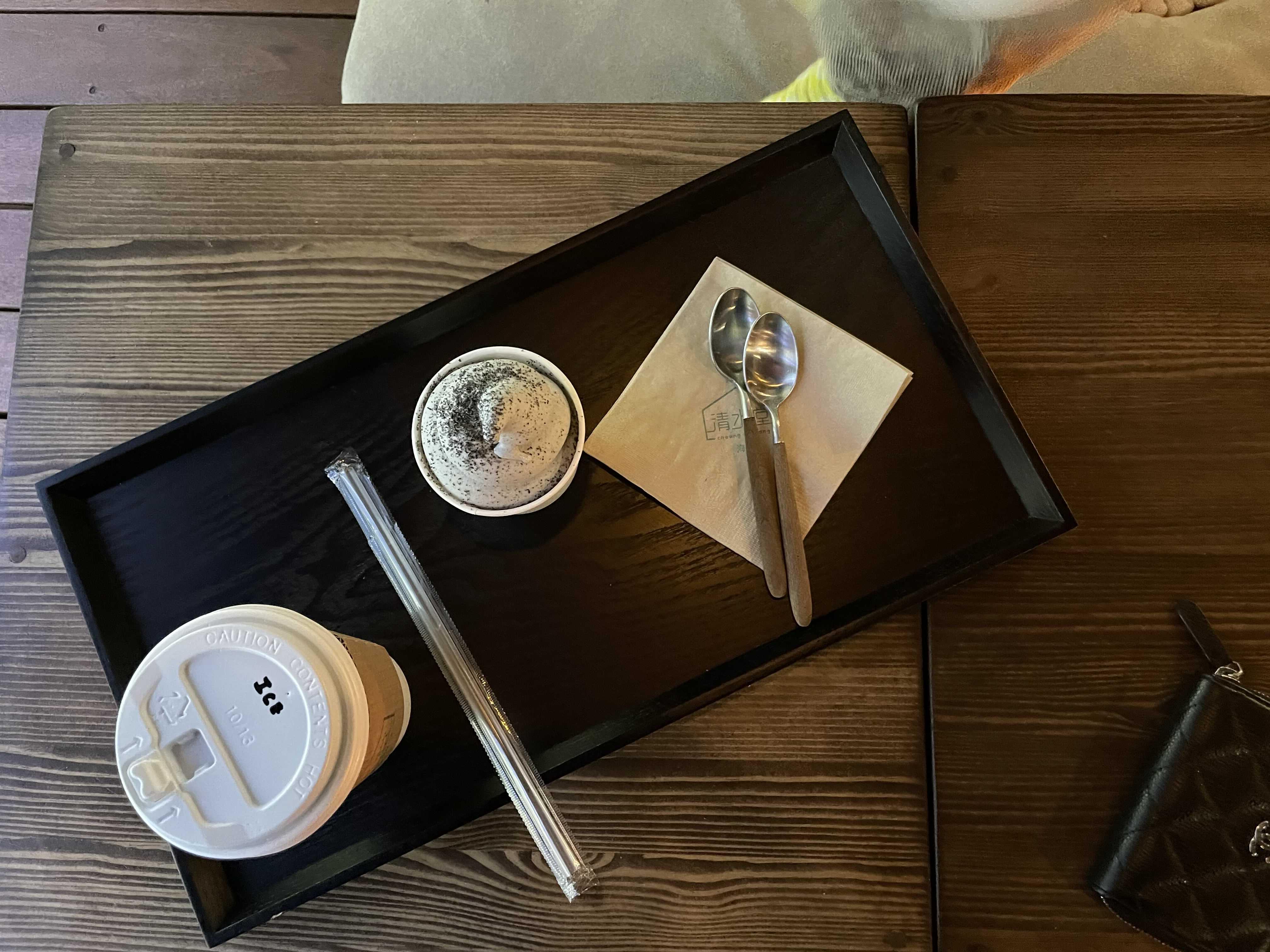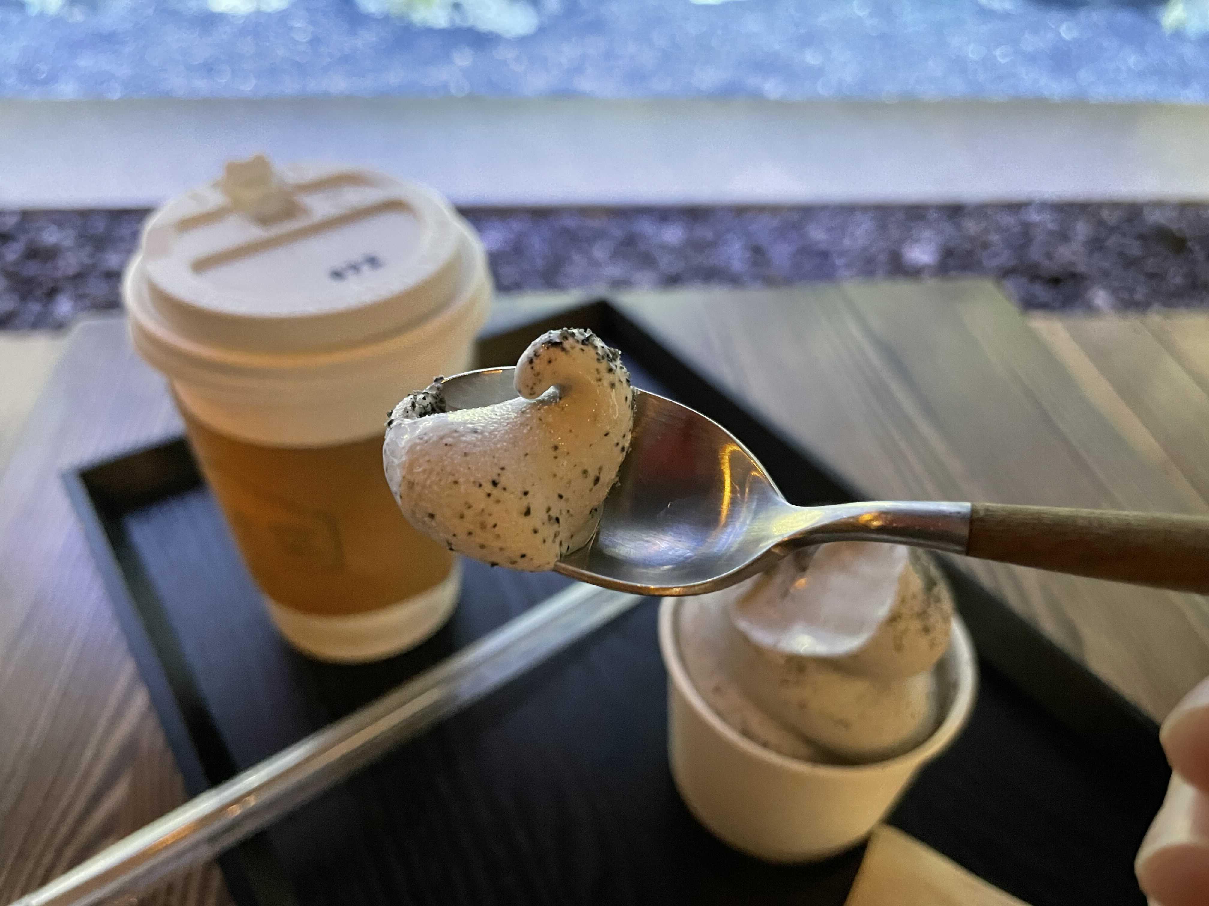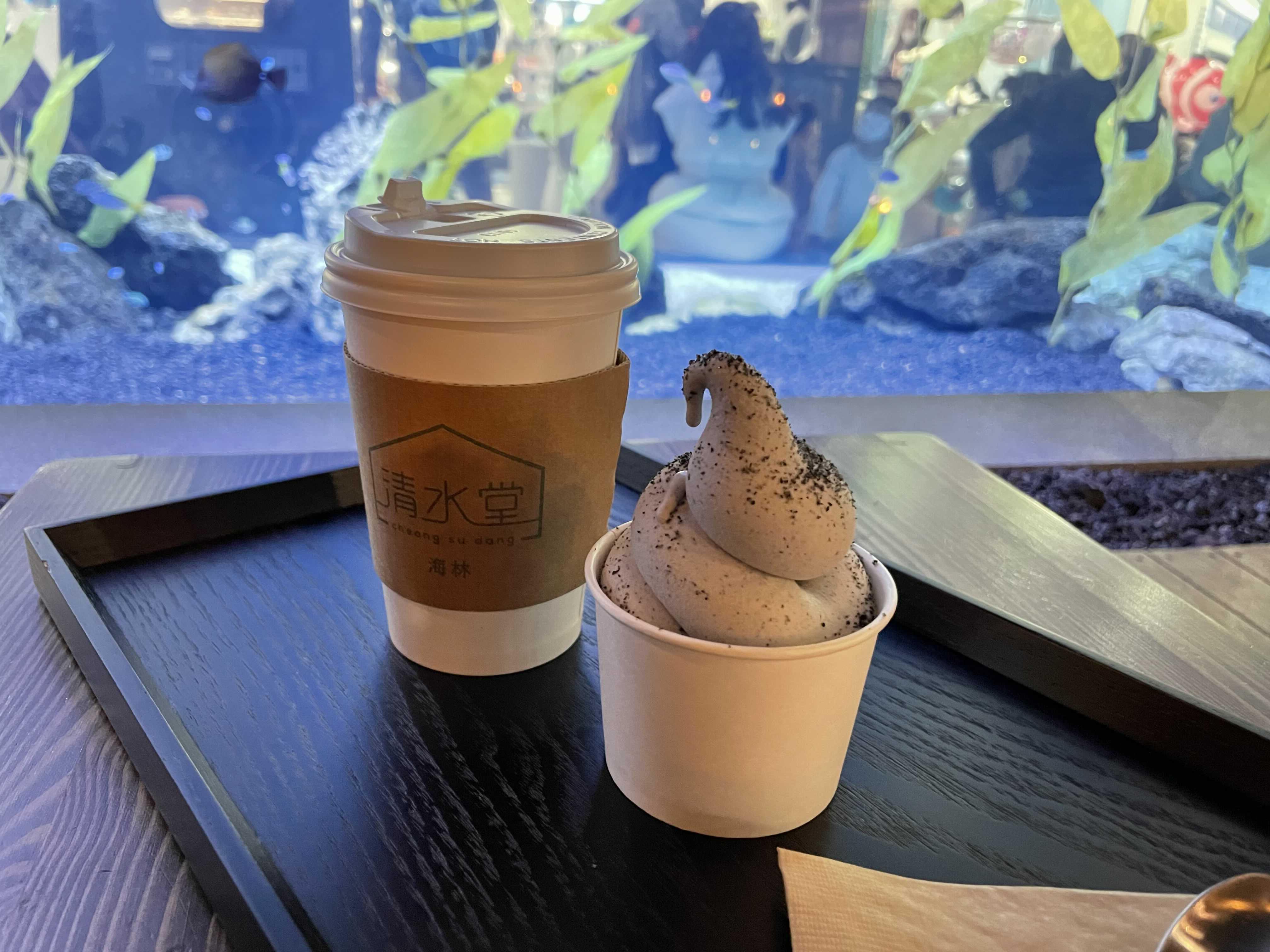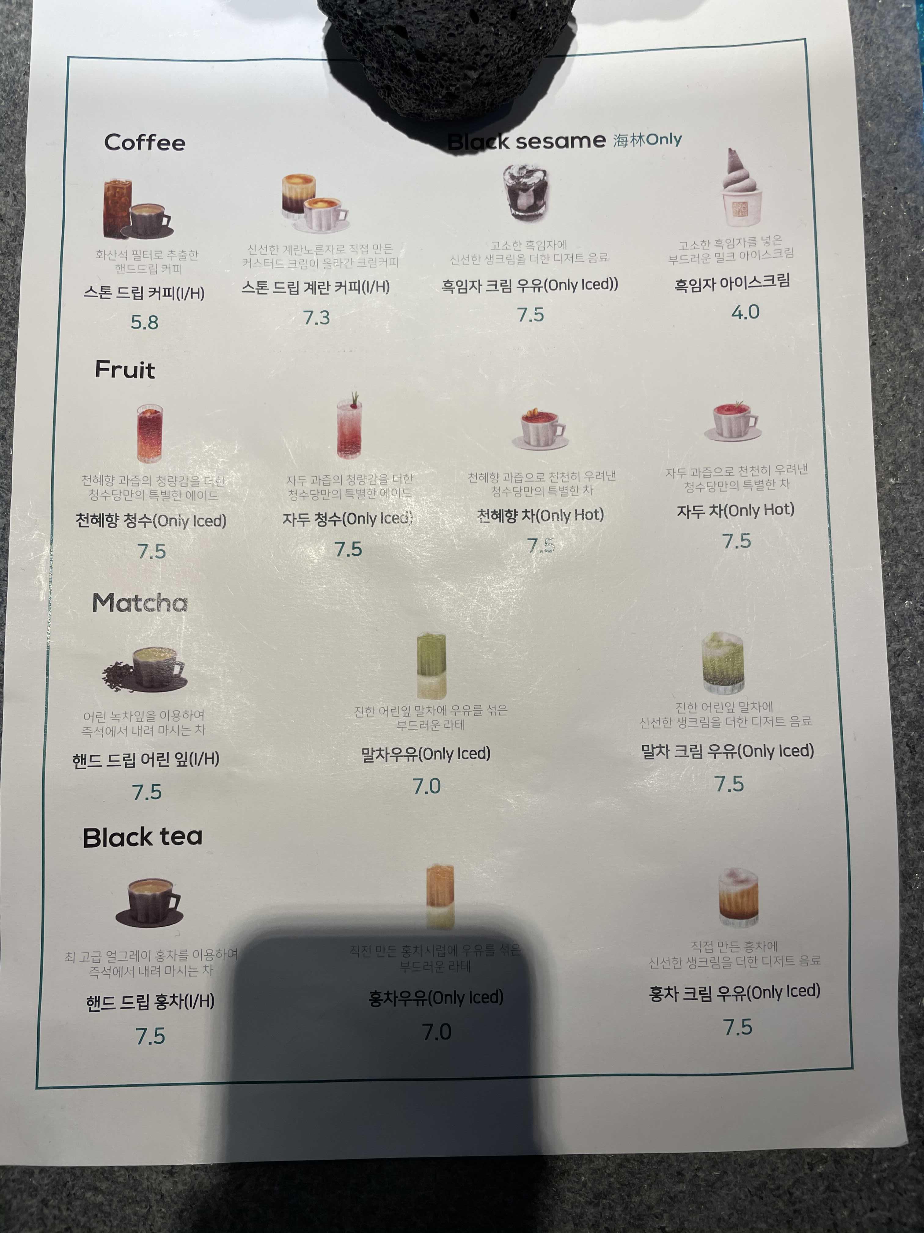 처음 보는 자두차가 먹어보고 싶었지만 많이 달다고 해서 너무 단음료는 좋아하지 않는 저는 그냥 무난하게 아이스 스톤 드립커피와 숭이를 위해 흑임자 아이스크림 한개를 주문해 봤어요😊
